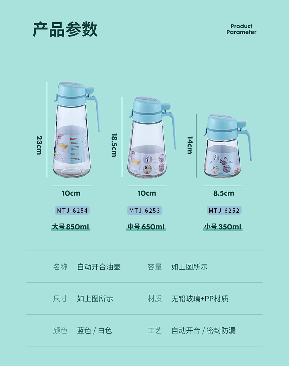 可靈自動開合玻璃油壺(350ml/650ml/850ml)