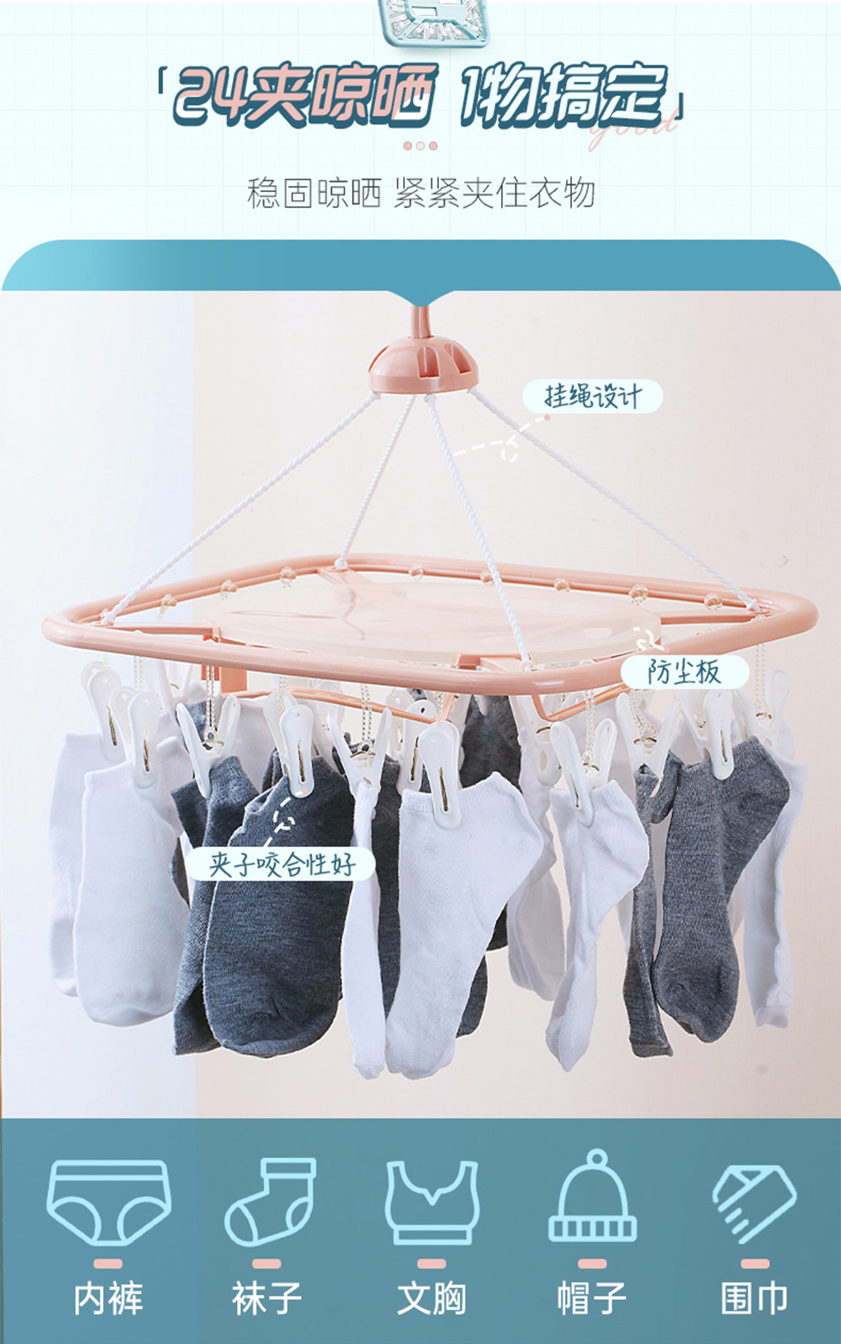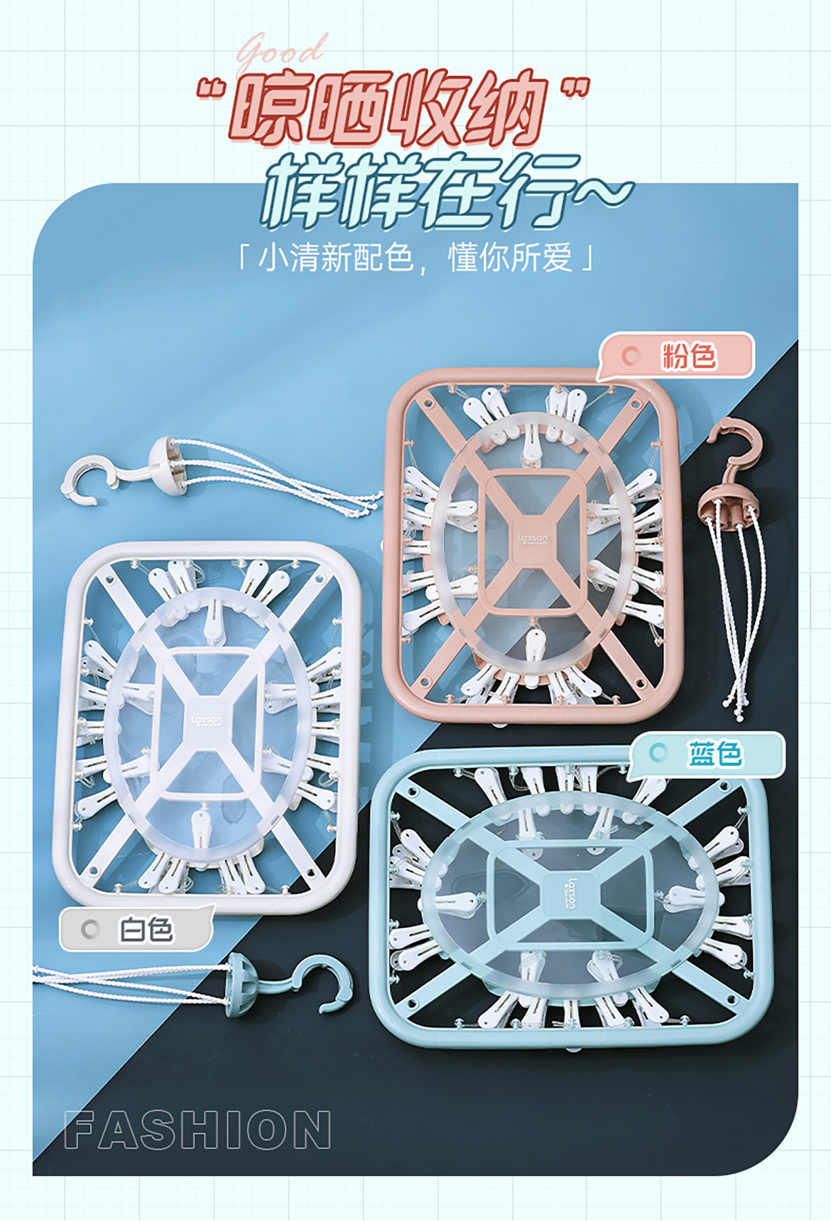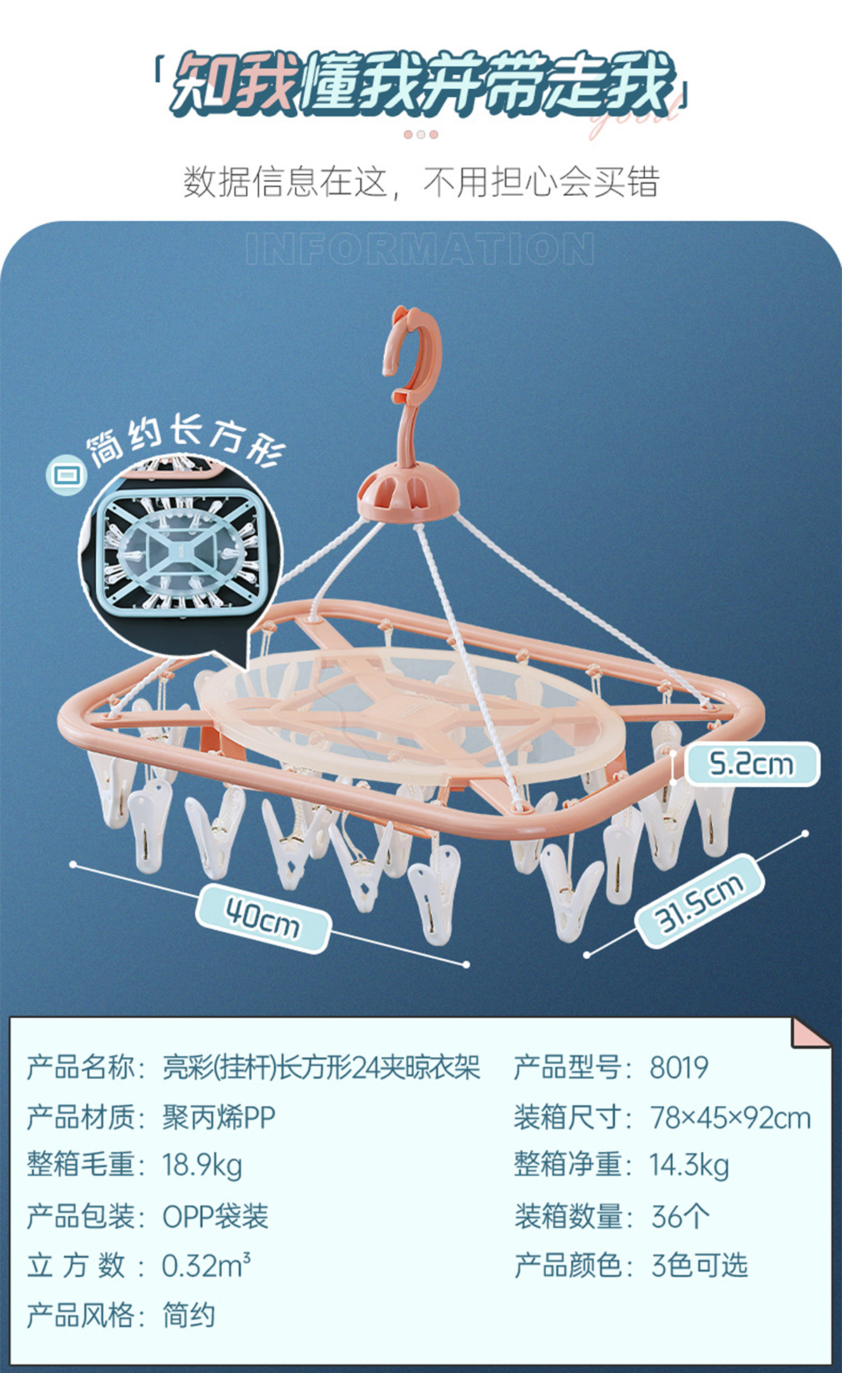 亮彩(掛桿)長(zhǎng)方形24夾晾衣架 2023年新色