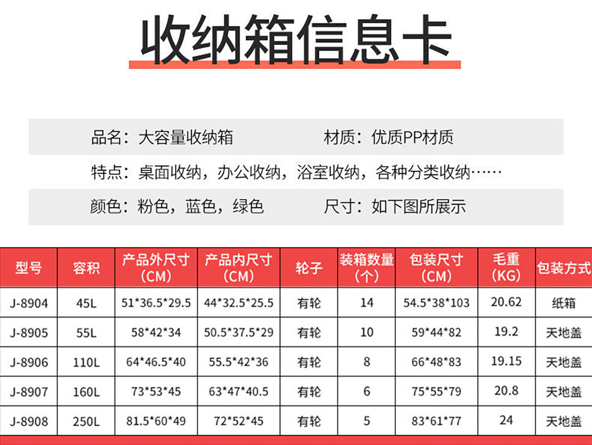 儲物箱45L/55L/110L/160L/250L(有輪) 實色/透明色