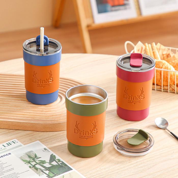 皮套防燙帶蓋咖啡杯(塑料內