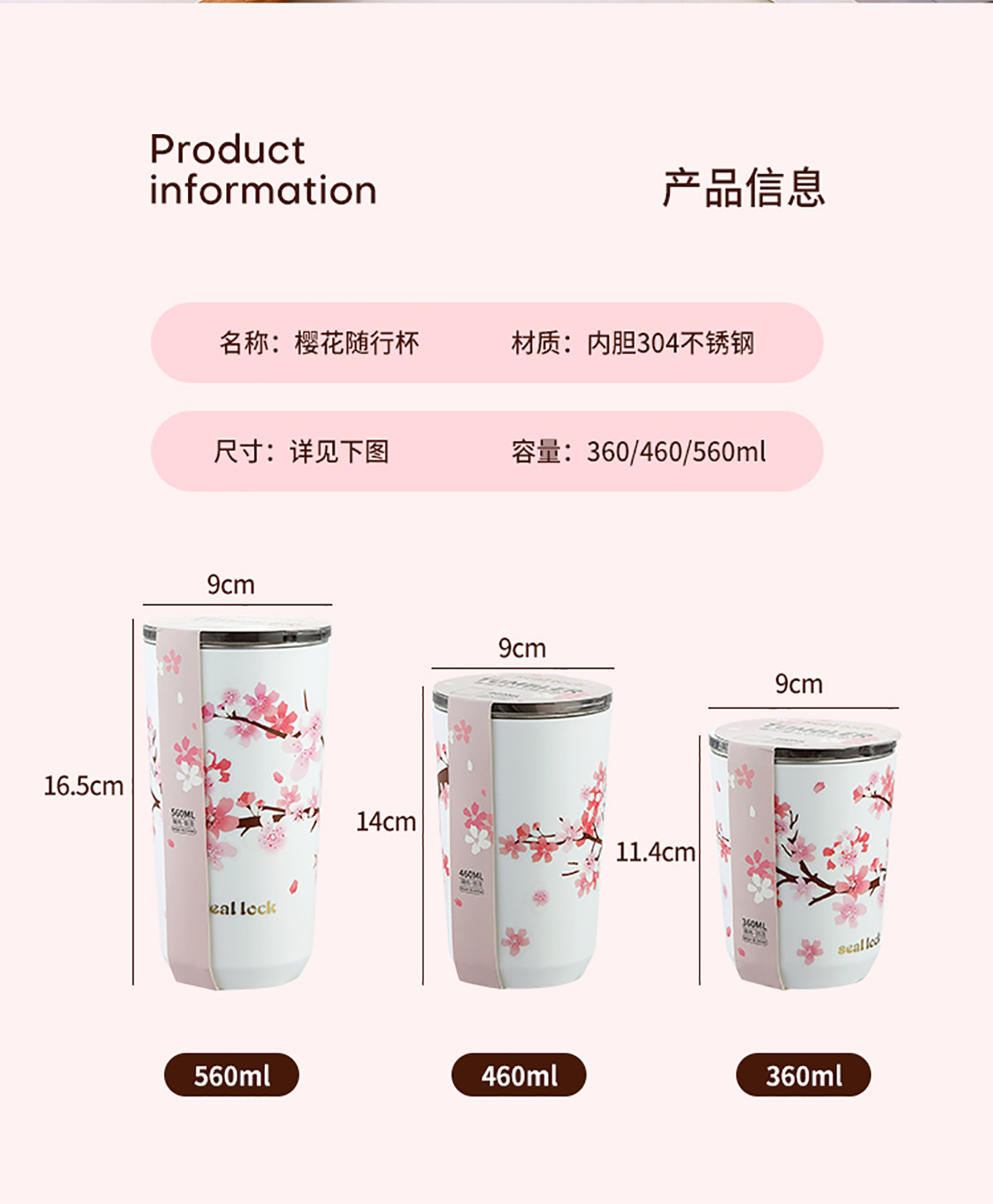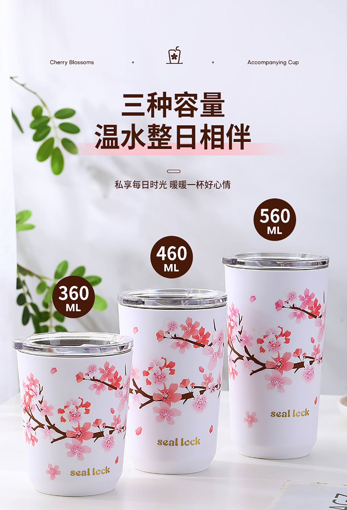 春日櫻花の隨手杯(防塵蓋)360ml/460ml/560ml