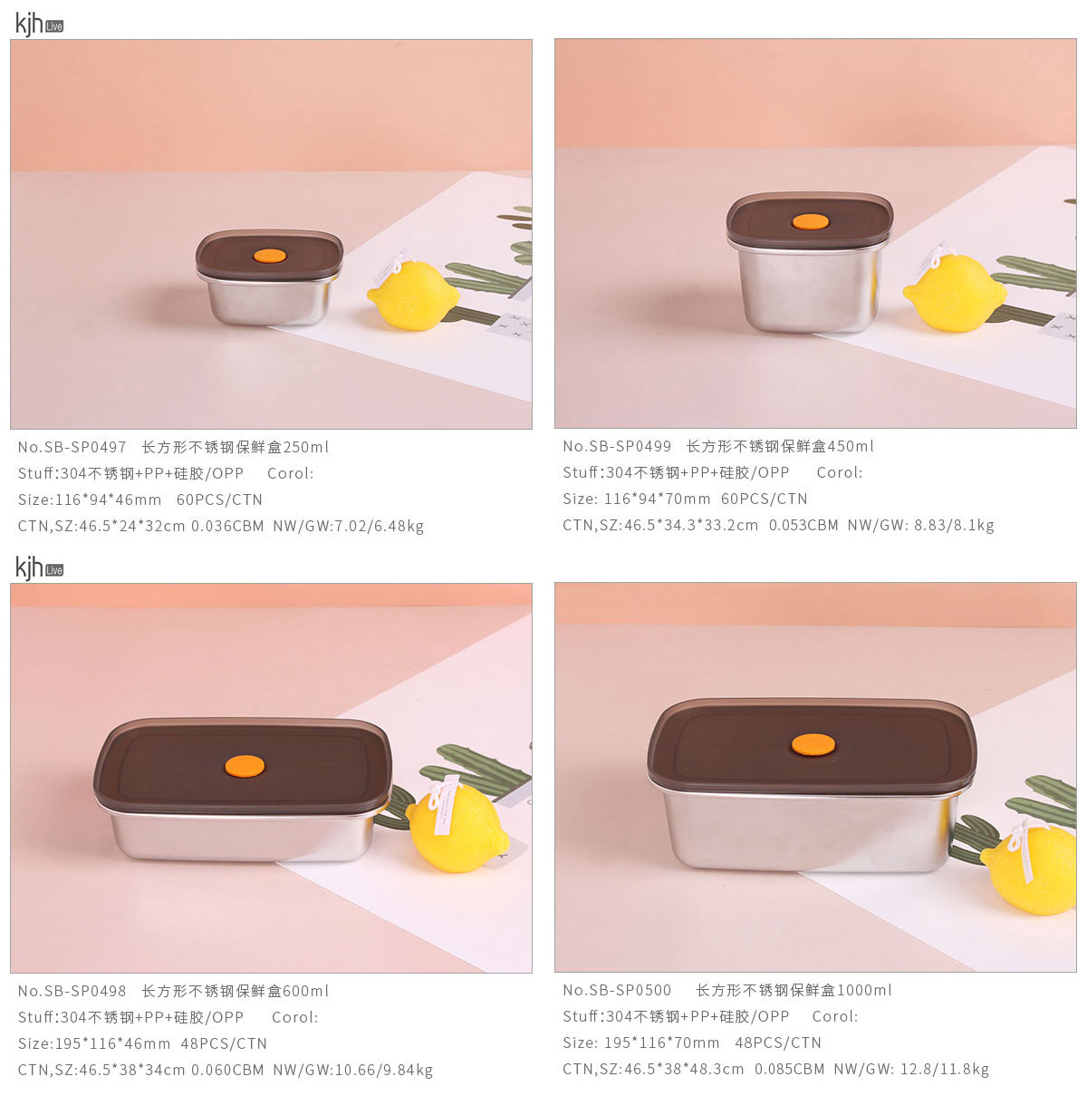 長方形不銹鋼保鮮盒250ml/450ml/600ml/1000ml