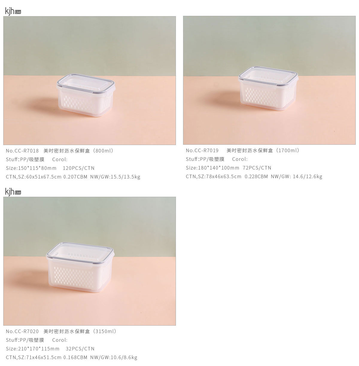 美時密封瀝水保鮮盒(800ml/1700ml/3150ml)
