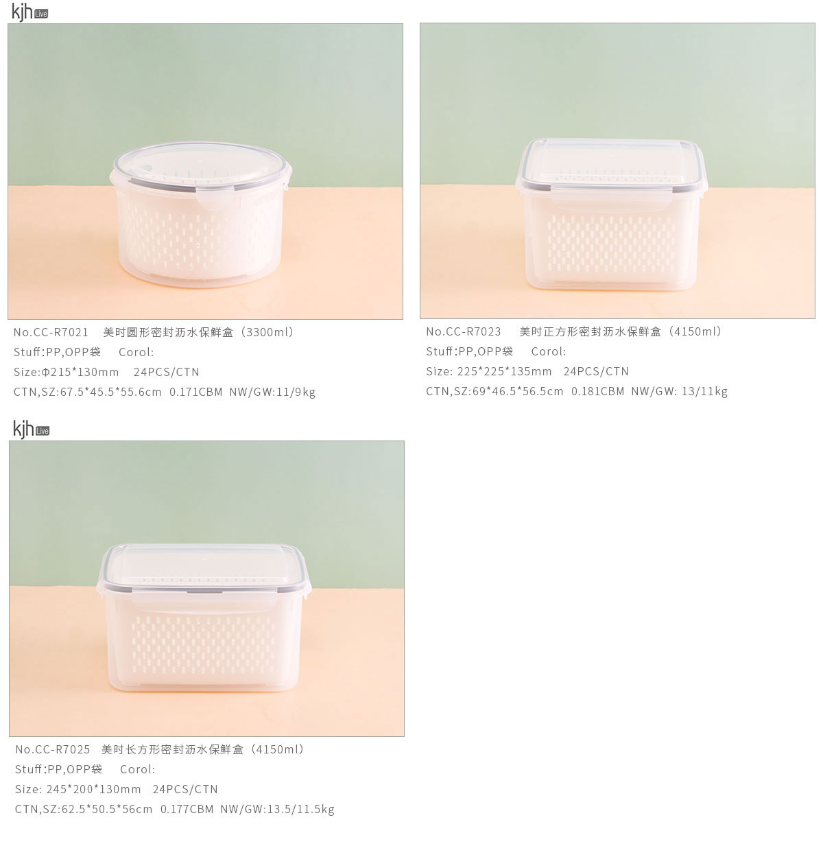 美時圓形/正方形/長方形密封瀝水保鮮盒(3300ml/4150ml/4150ml)