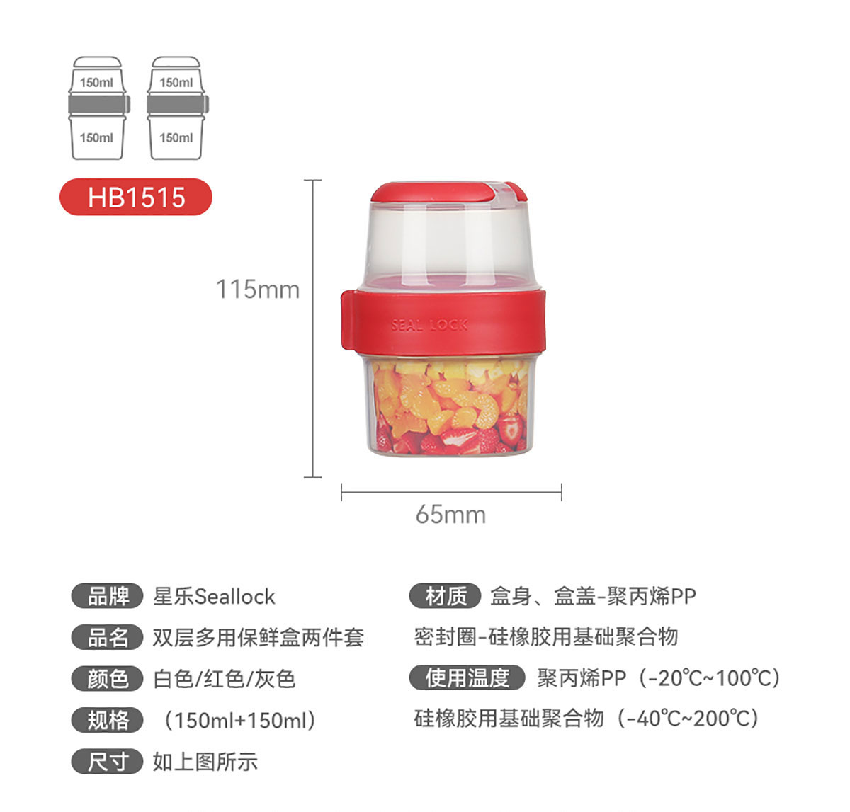SWY-HB1515:Φ65*高115mm/上層150ml+下層150ml=300ml