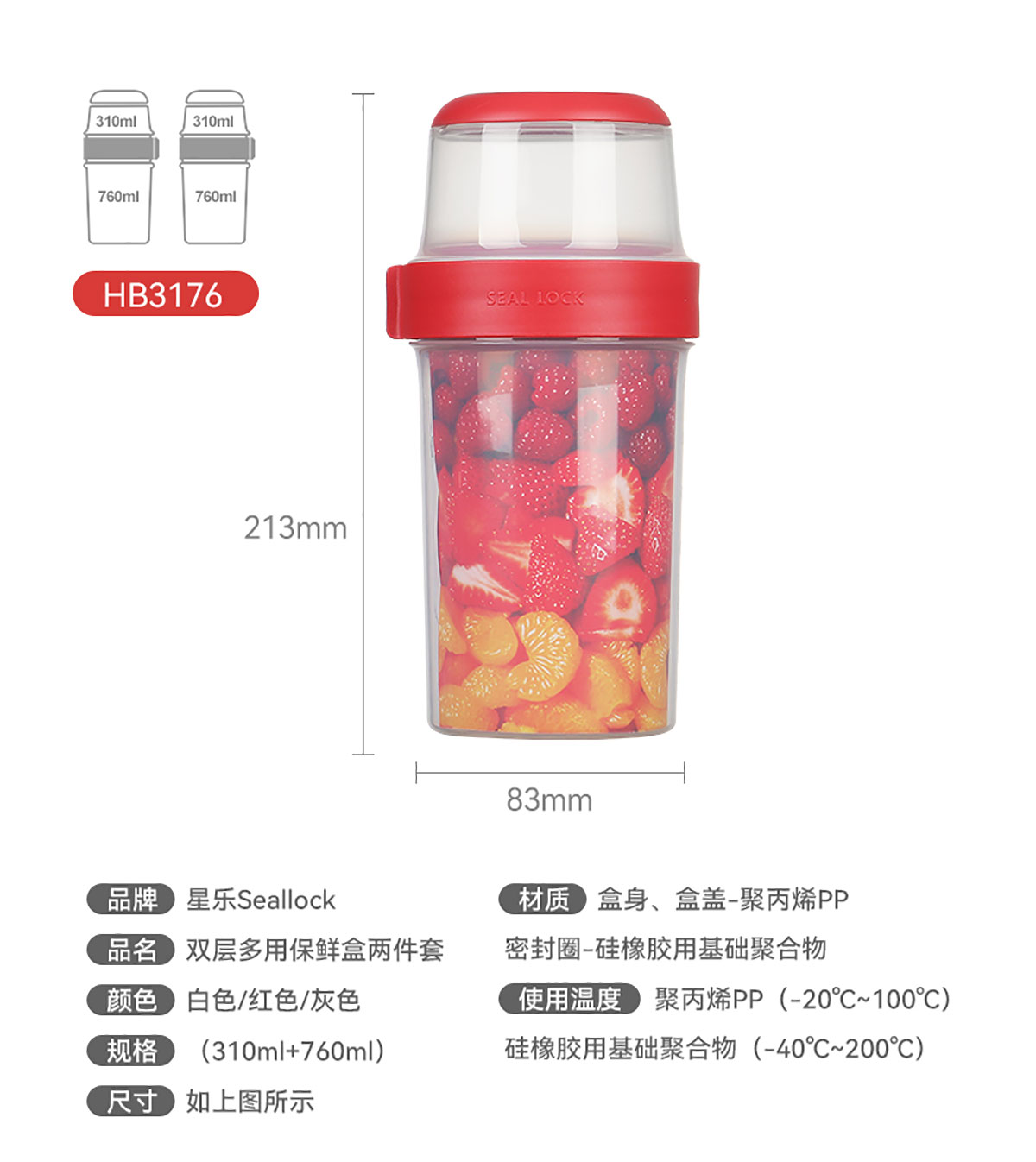 SWY-HB3176:Φ83*高213mm/上層310ml+下層760ml=1070ml