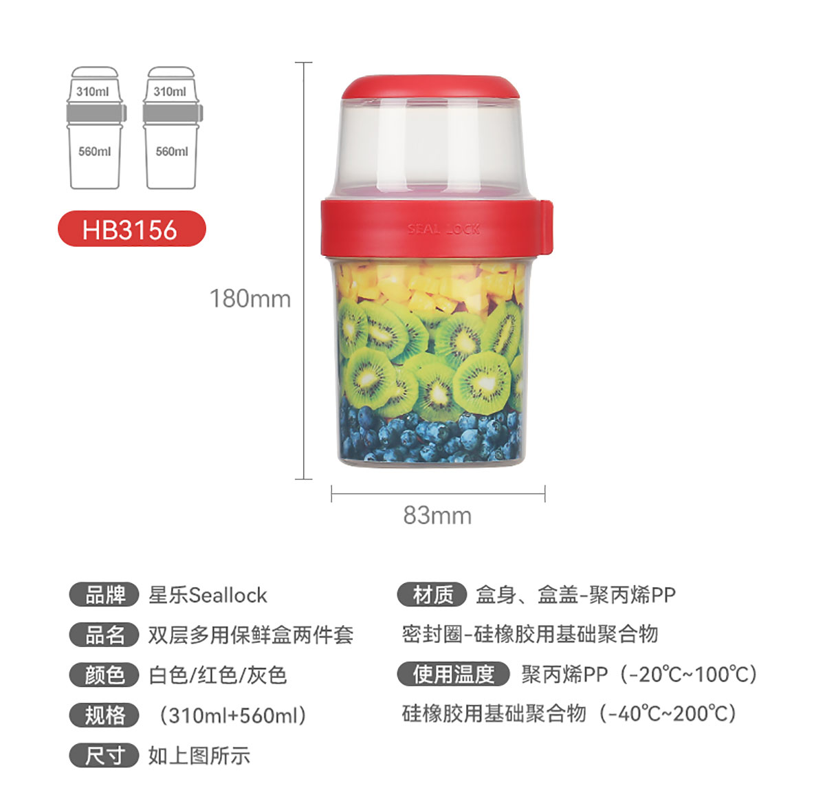 SWY-HB3156:Φ83*高180mm/上層310ml+下層560ml=870ml