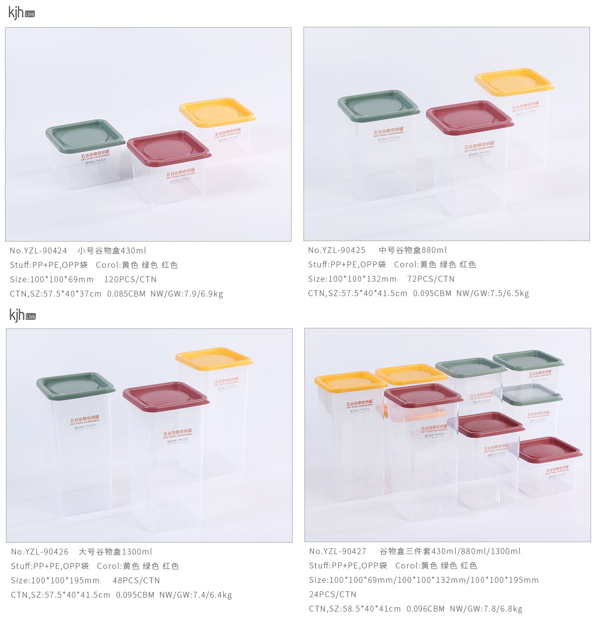 小號(hào)/中號(hào)/大號(hào)/三件套谷物盒430ml