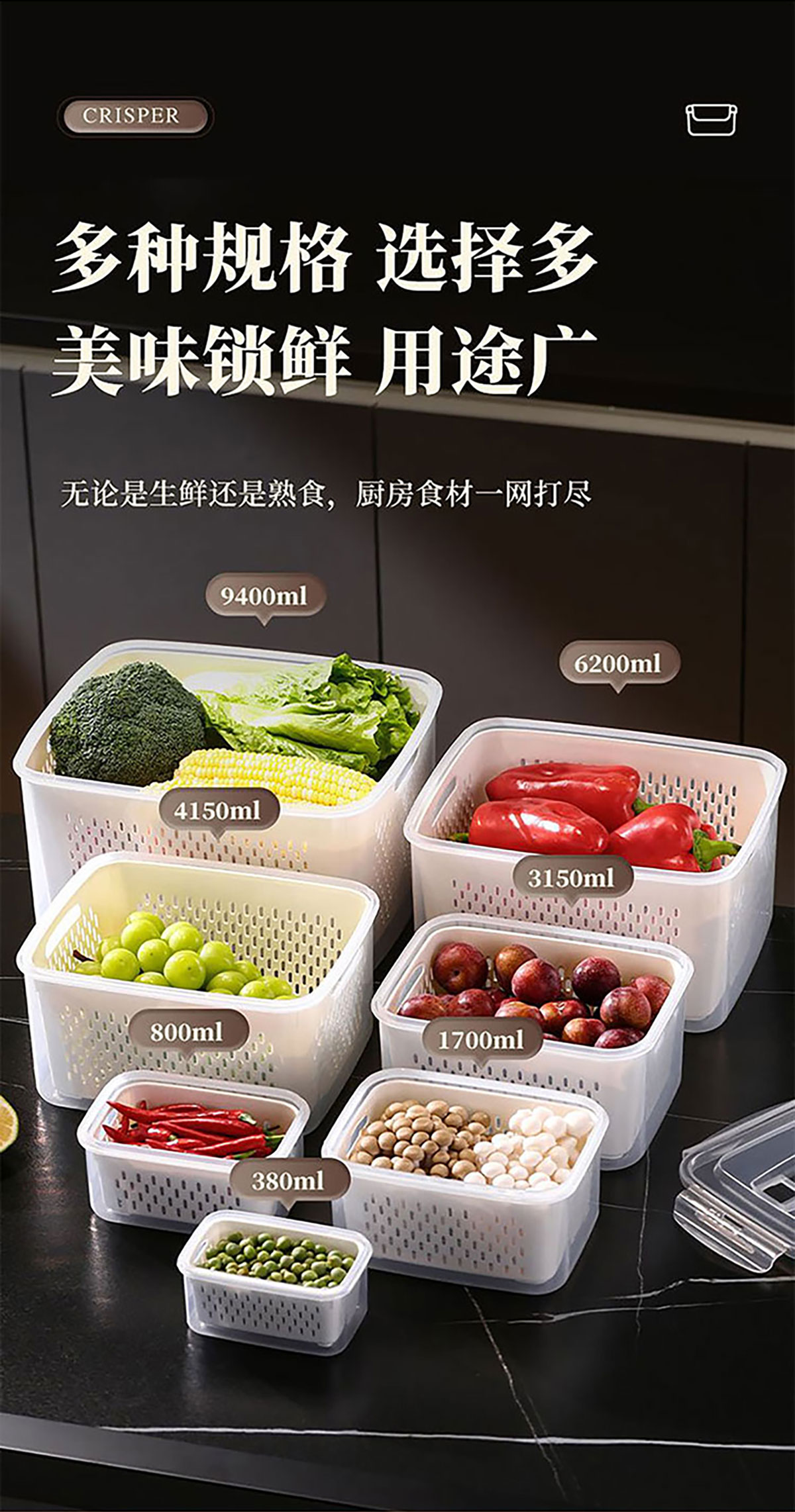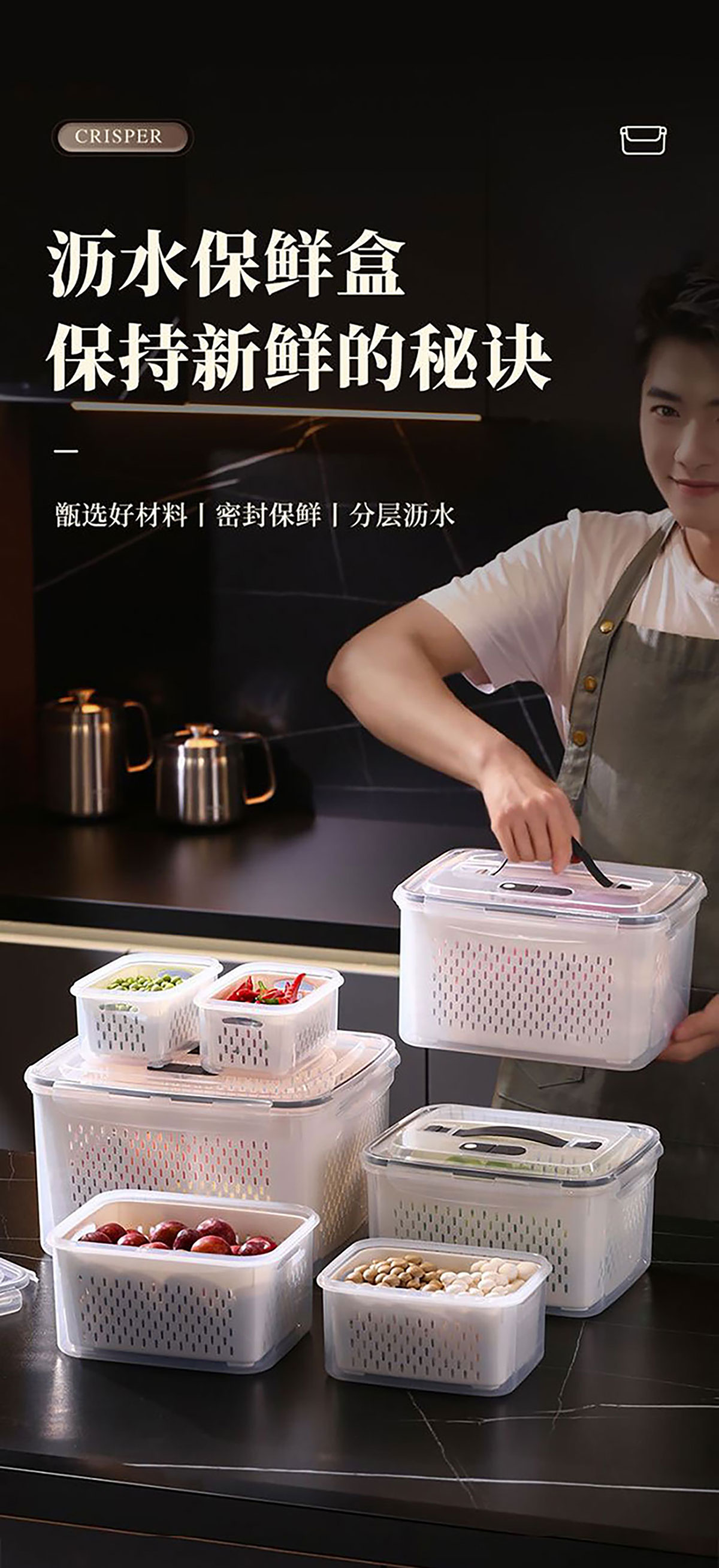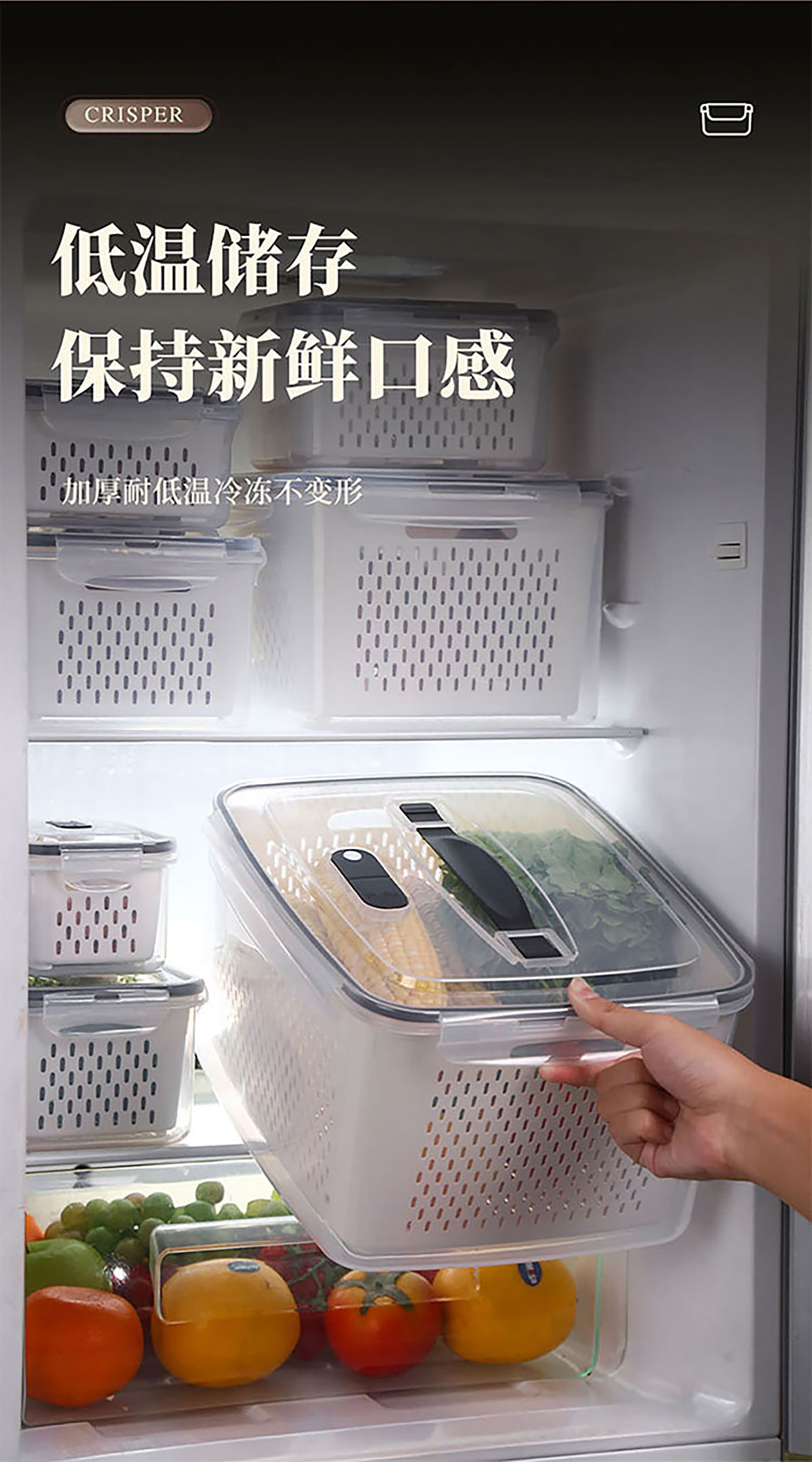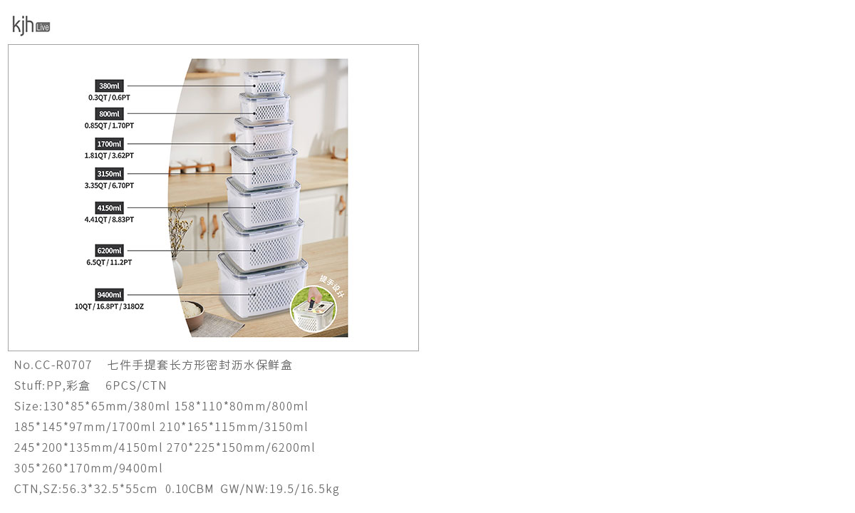 三件/四件/五件/六件/七件手提套長(zhǎng)方形密封瀝水保鮮盒