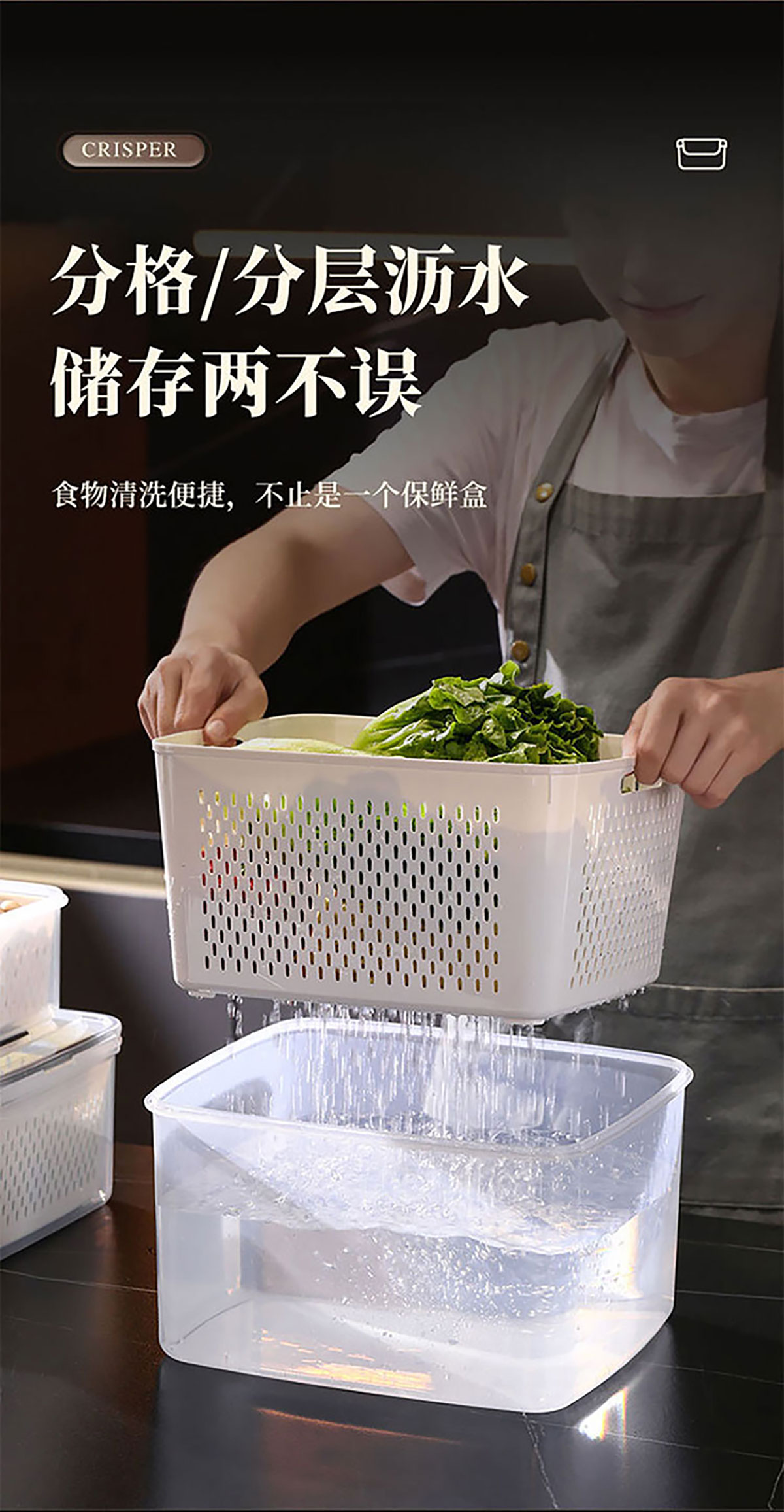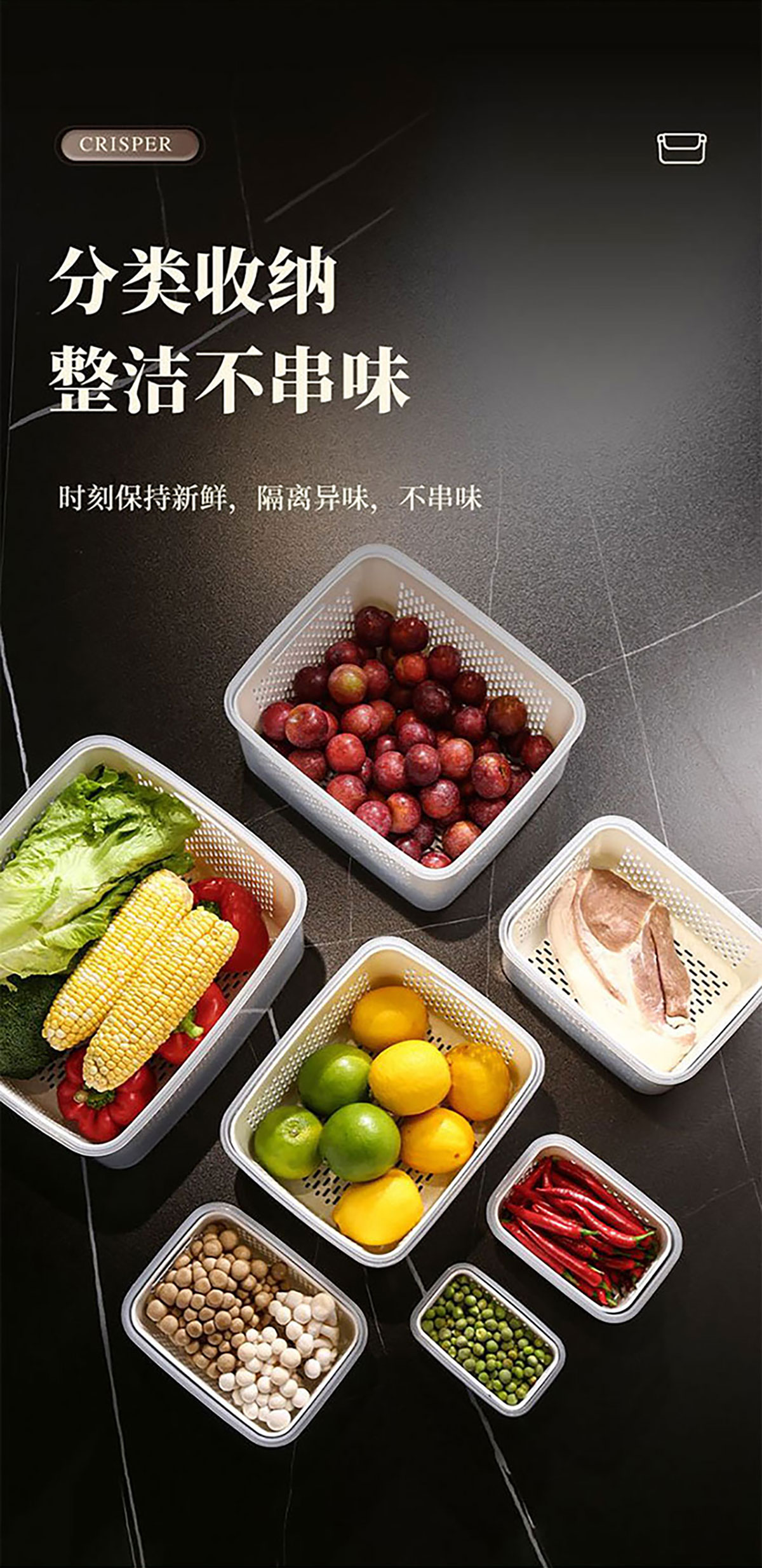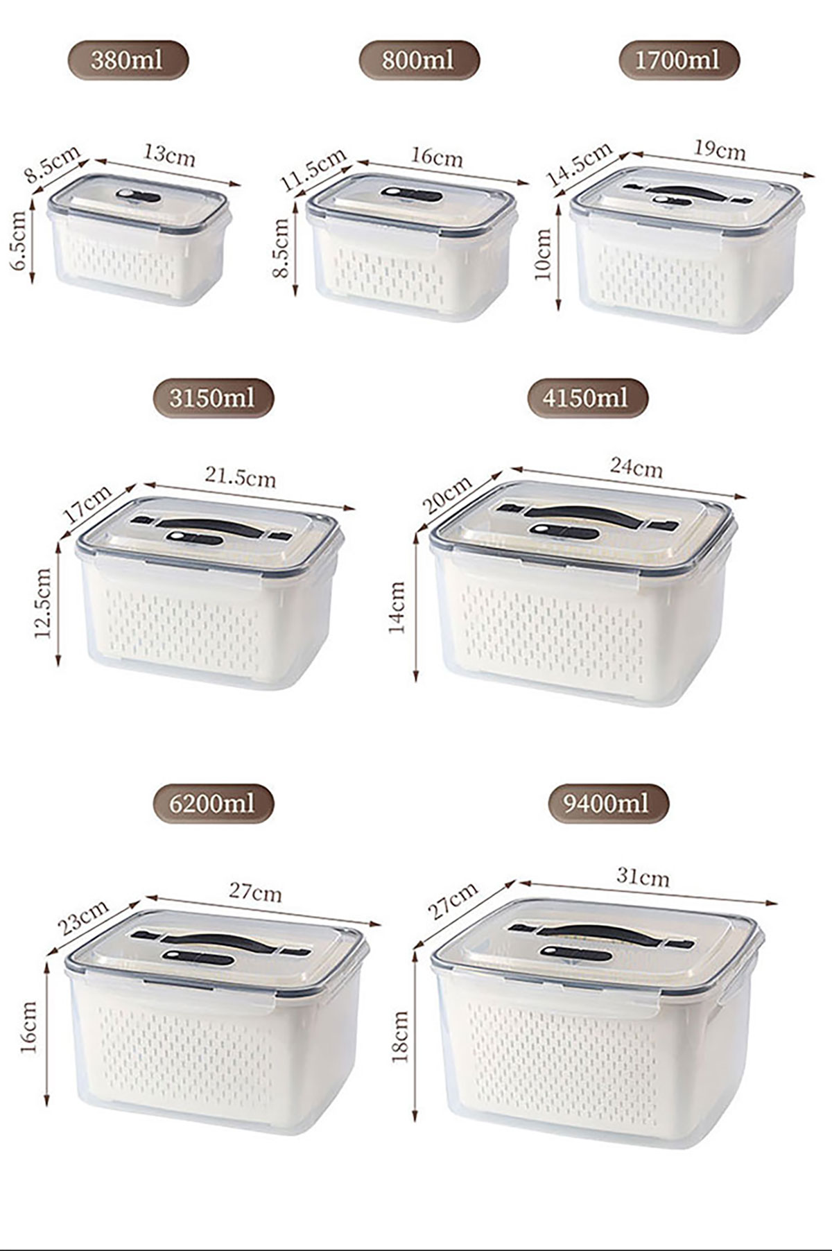 三件/四件/五件/六件/七件手提套長(zhǎng)方形密封瀝水保鮮盒