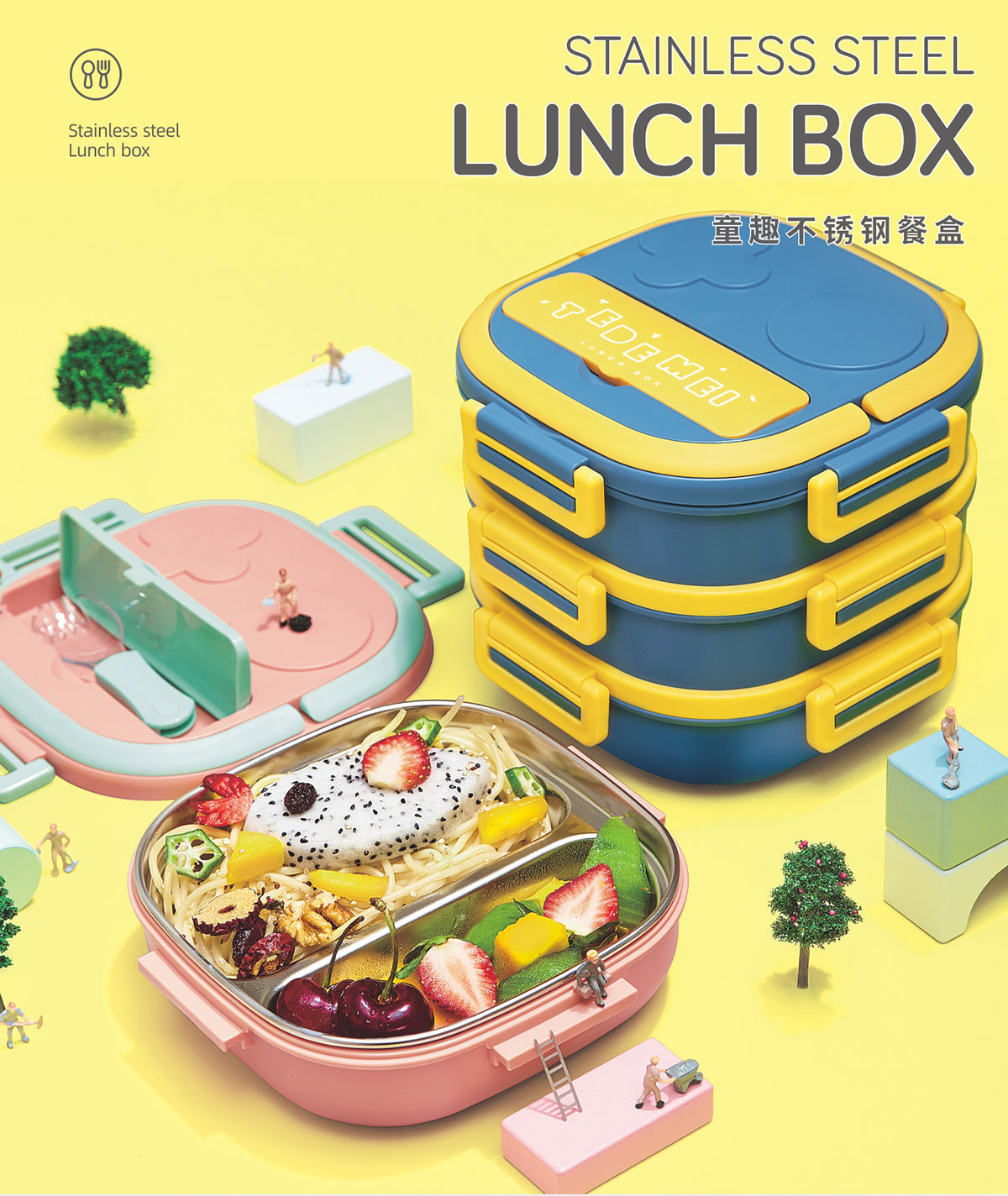 童趣不銹鋼單層(兩格/三格)/多格(/雙層/三層)餐盒