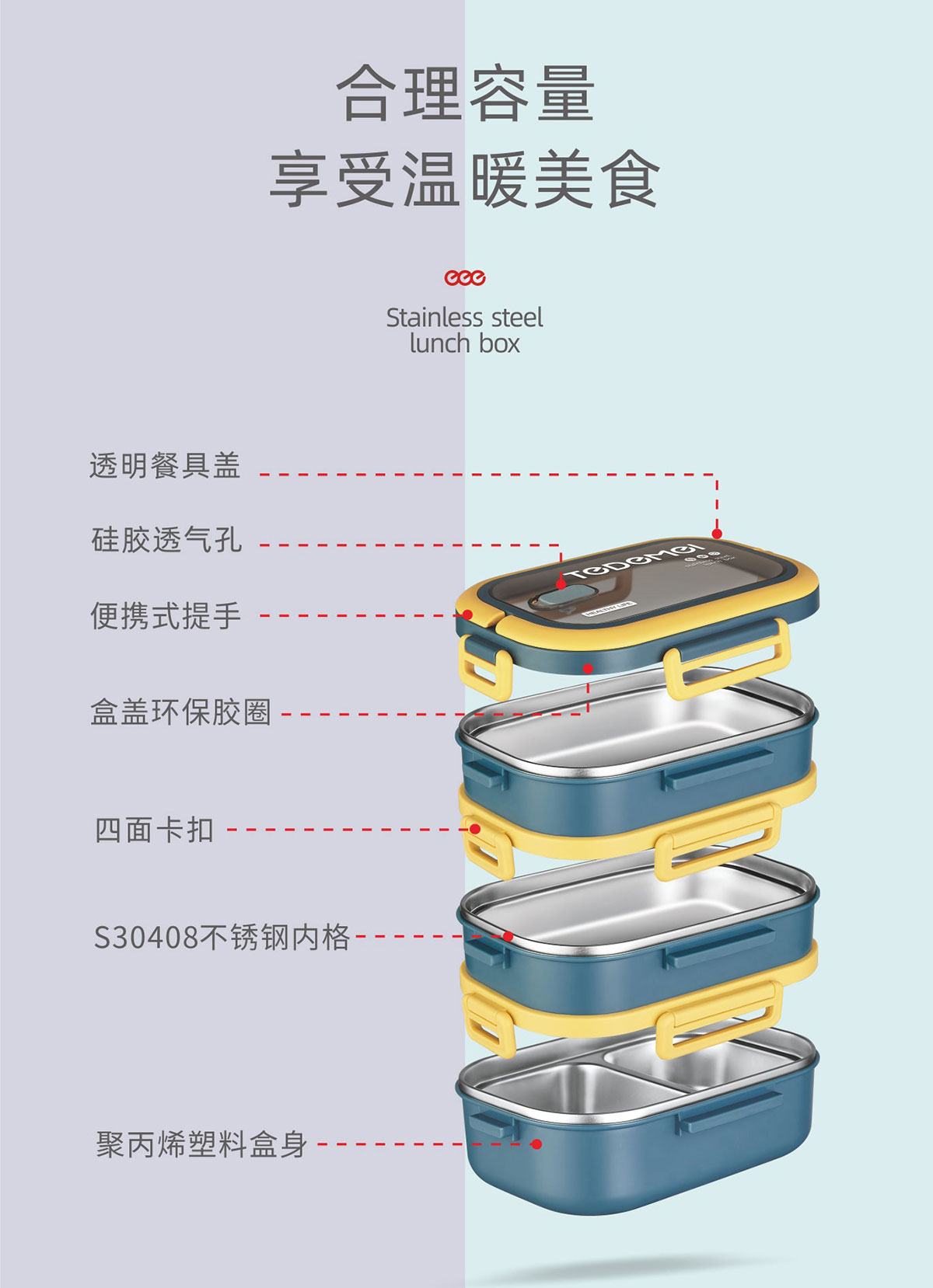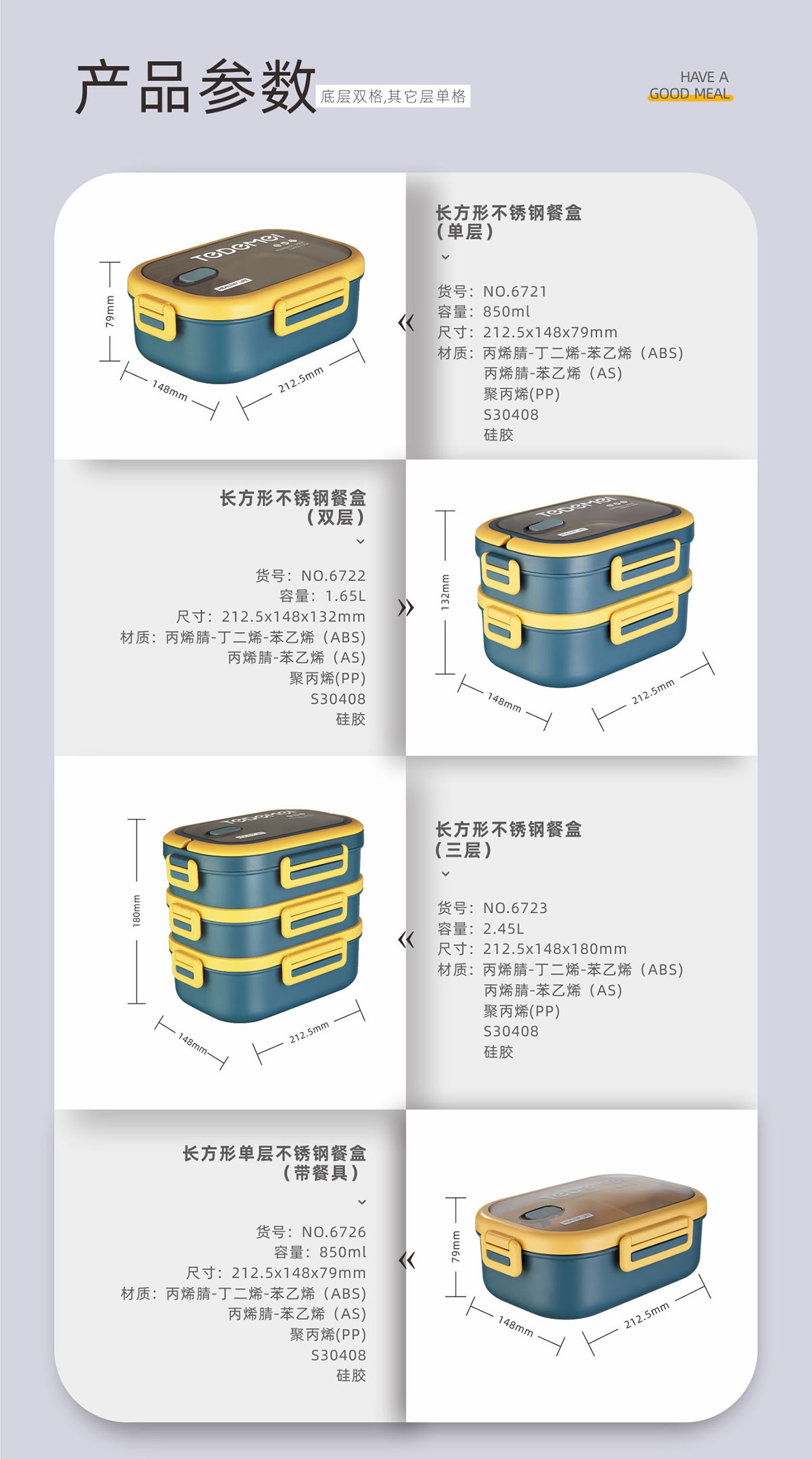 長方形不銹鋼餐盒(單層/雙層/三層)