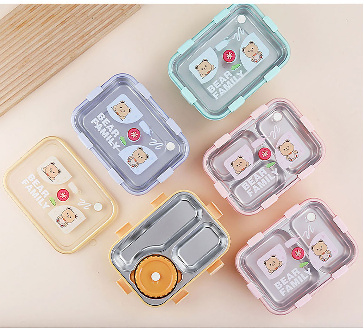 卡通小熊304不銹鋼飯盒(一格 850ml/二格800ml/三格750ml/三格+碗700ml+150ml)