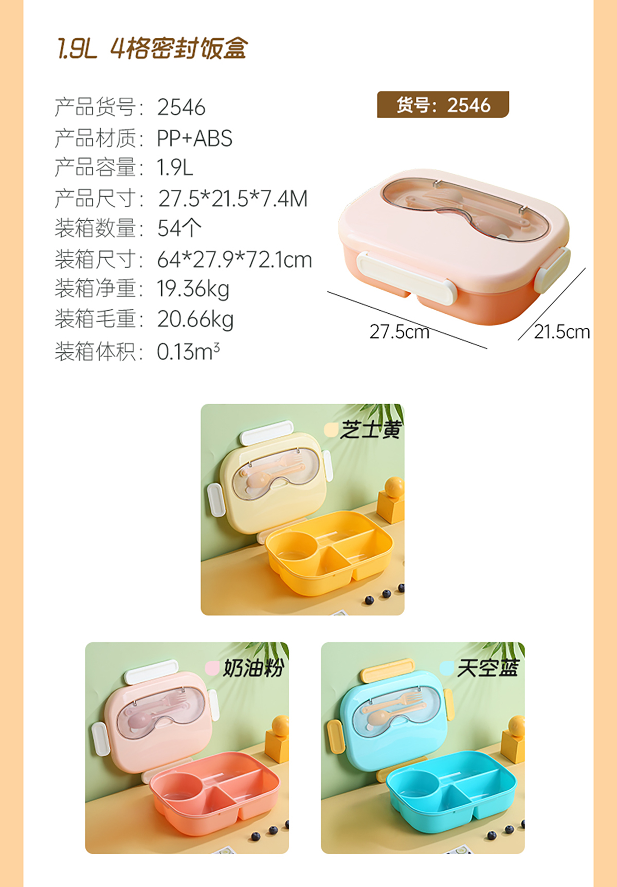 AQX-2546(4格/1.9L):275*215*74mm