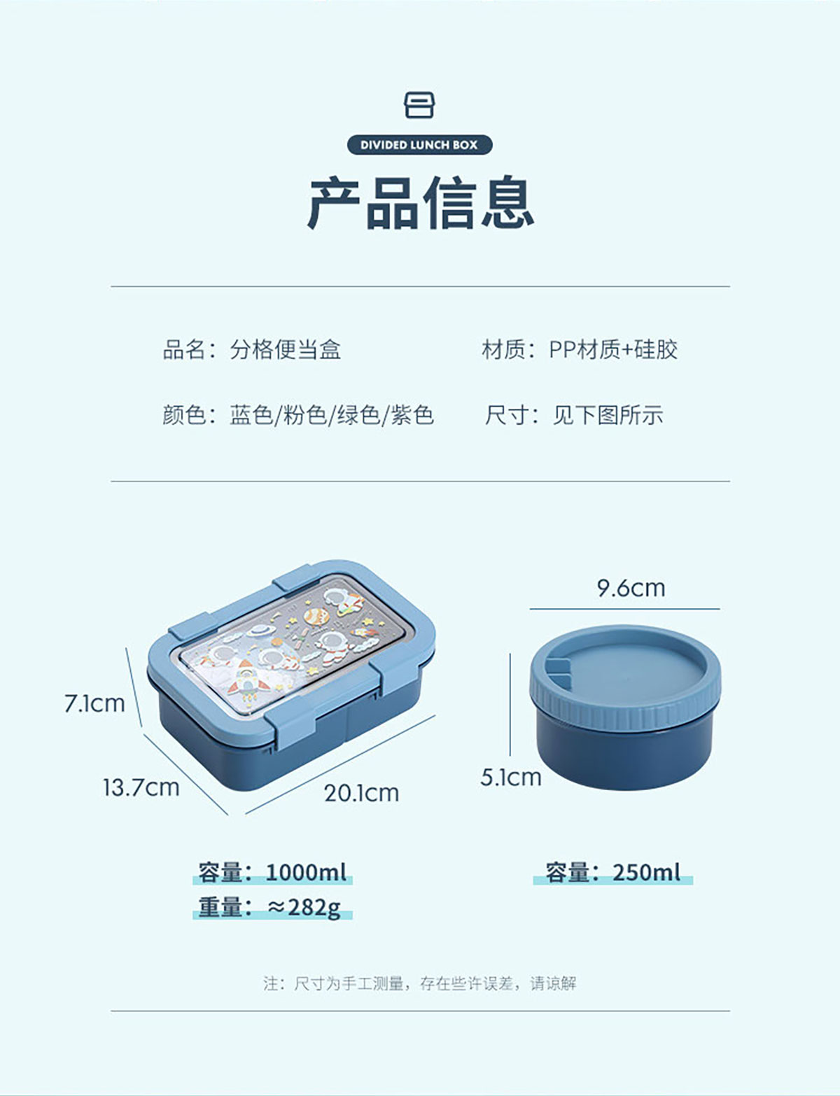Size: 飯盒:201*137*71mm/1000ml 湯杯:?96*51mm/250ml