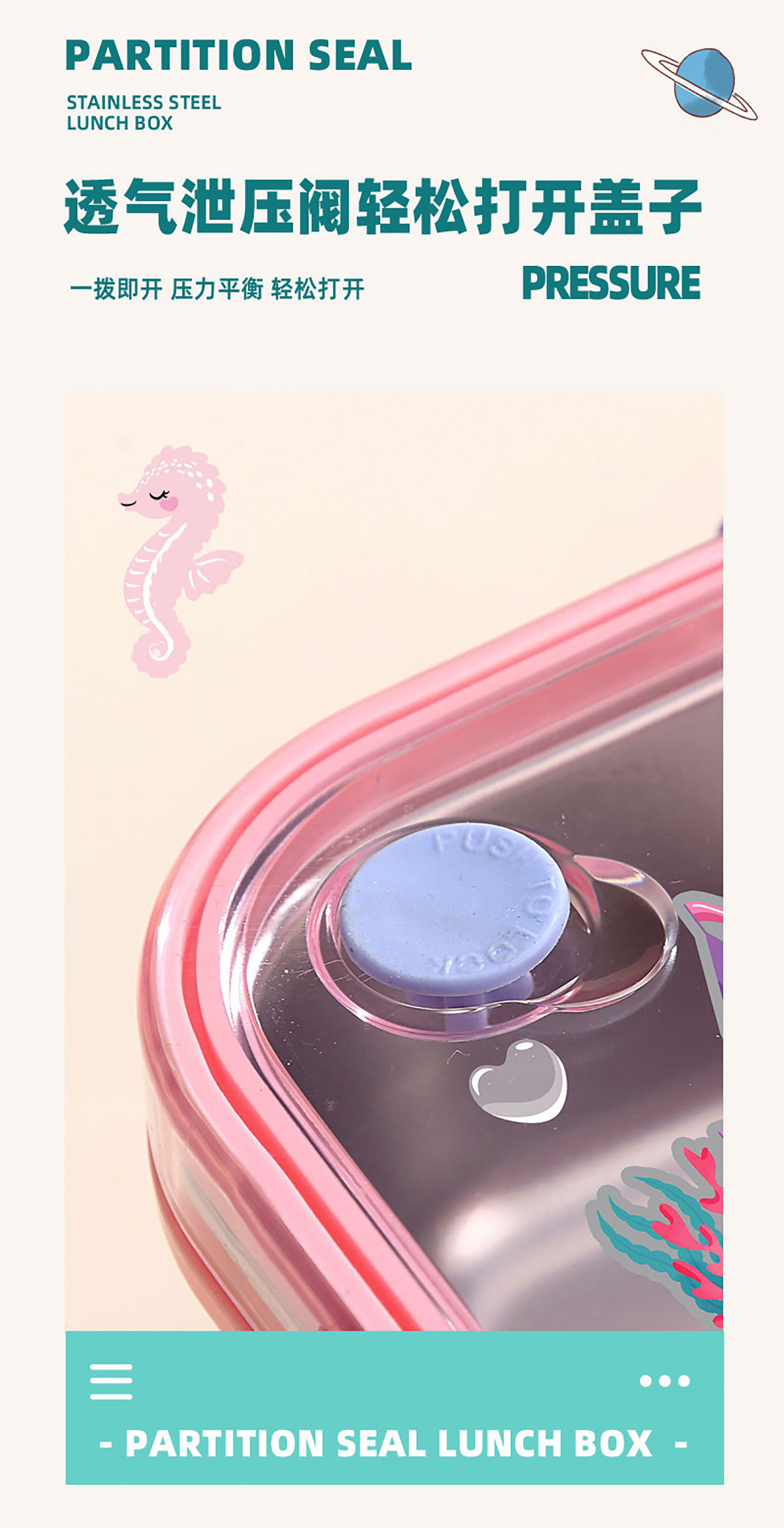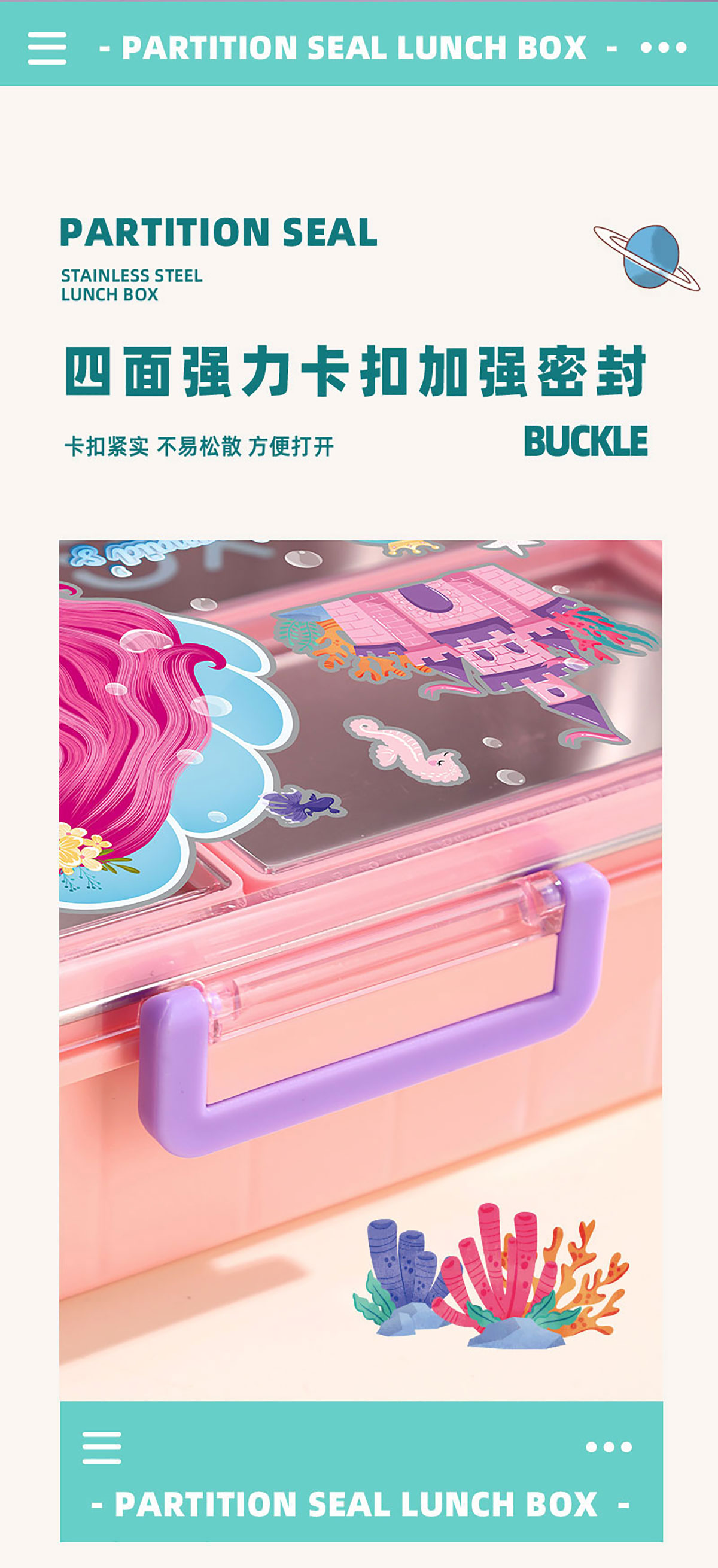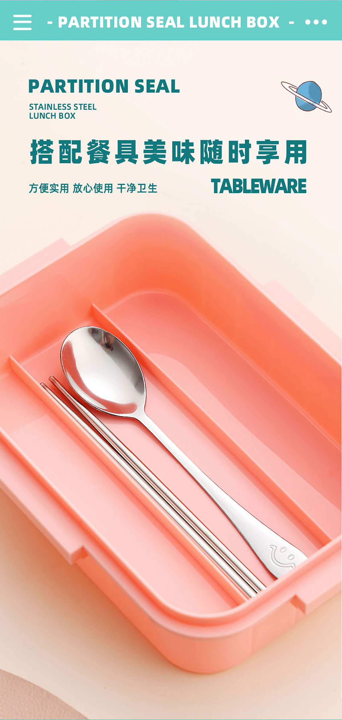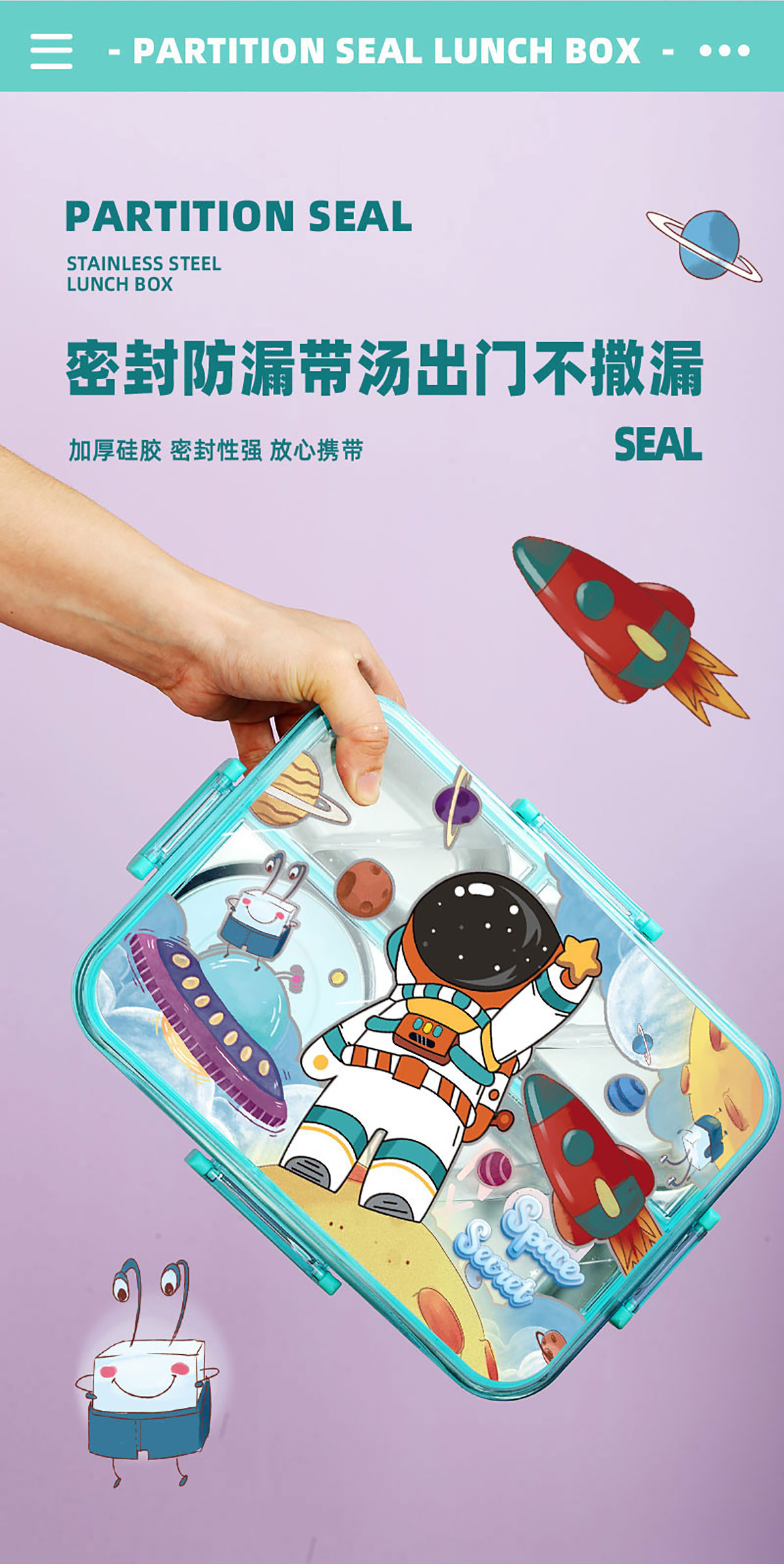 彩光卡通不串味餐盒(不銹鋼4格900ml+醬料杯80ml/鋼碗150ml)