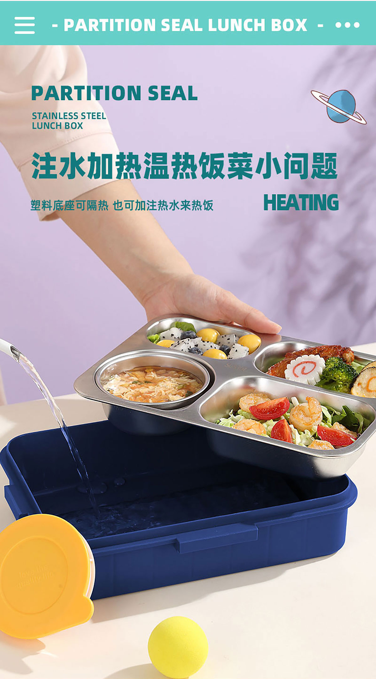 AQX-2630:262*193*65mm/不銹鋼4格900ml+鋼碗150ml