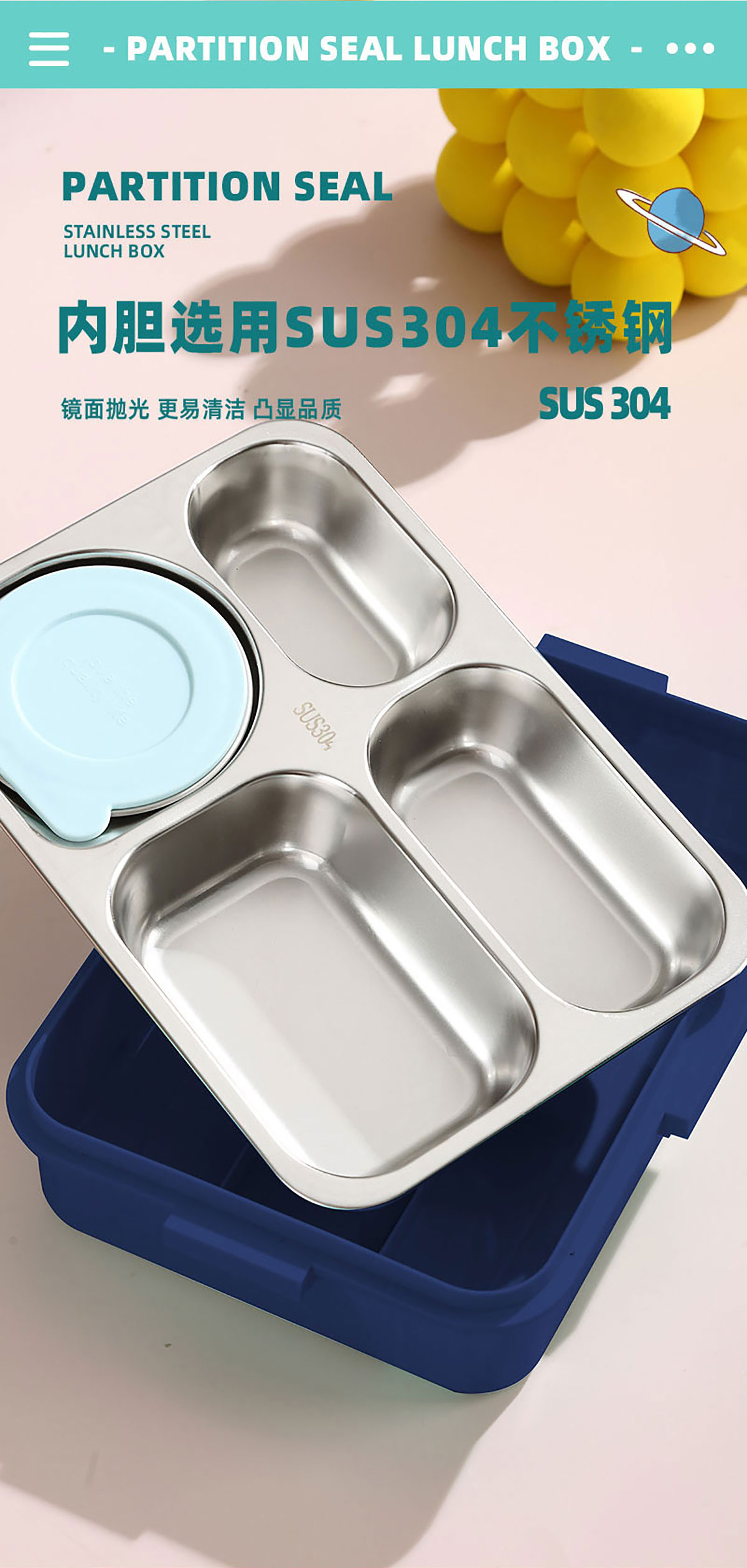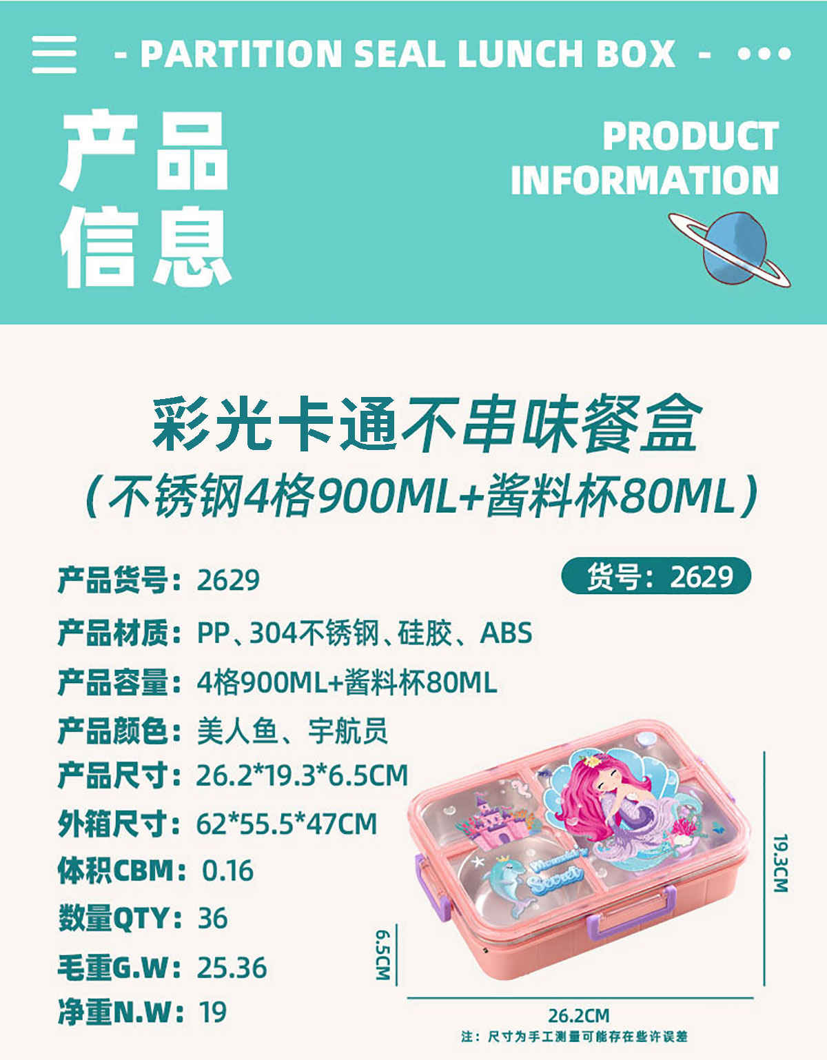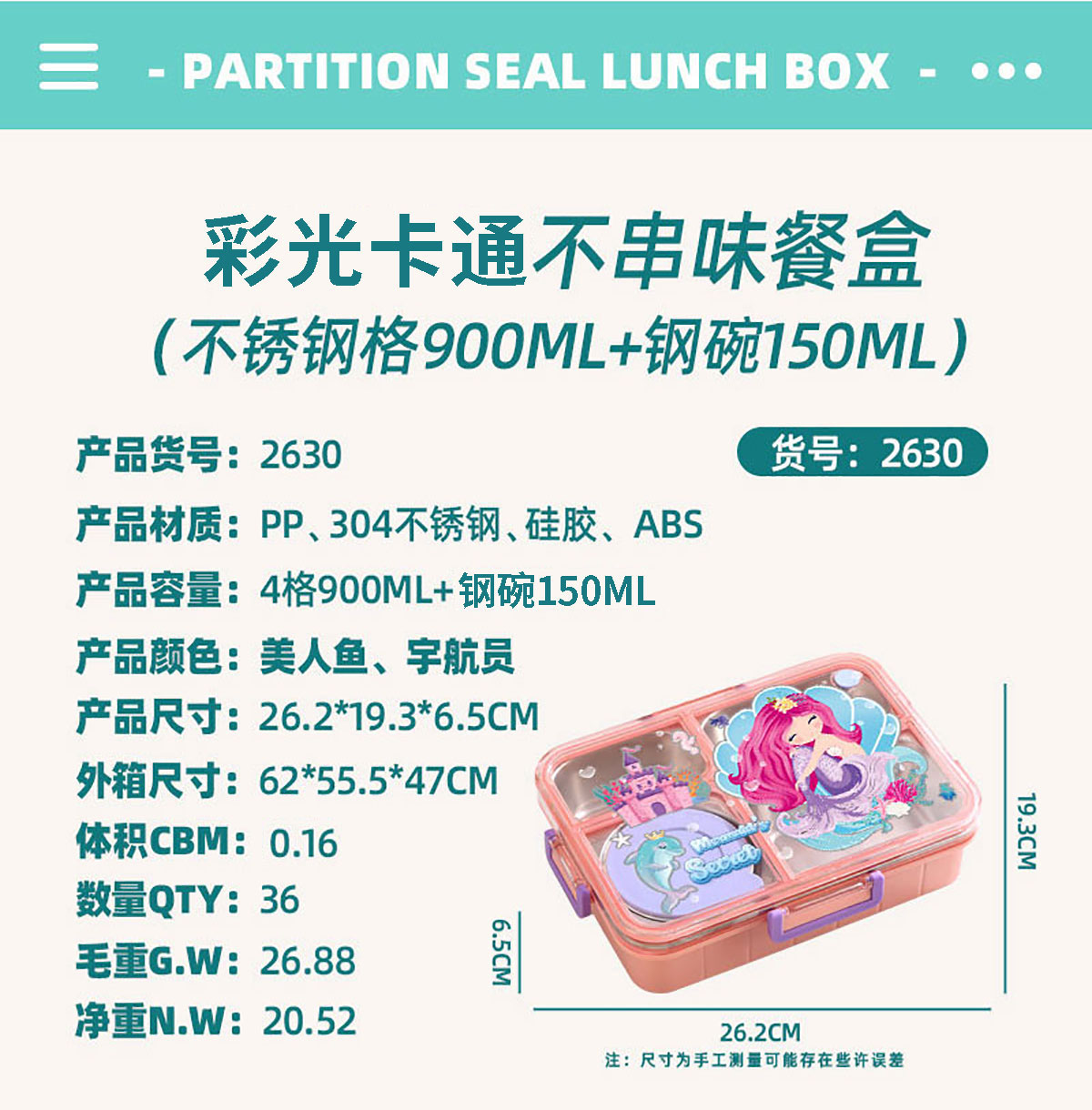 AQX-2629:262*193*65mm/不銹鋼4格900ml+醬料杯80ml