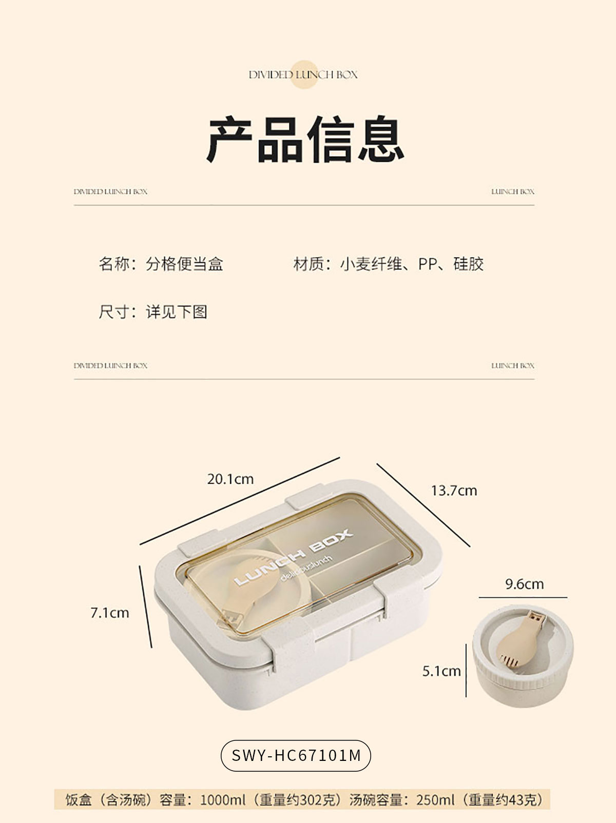 SWY-HC67101M(三格):飯盒:201*137*71mm/1000ml 湯碗:Φ96*51mm/250ml