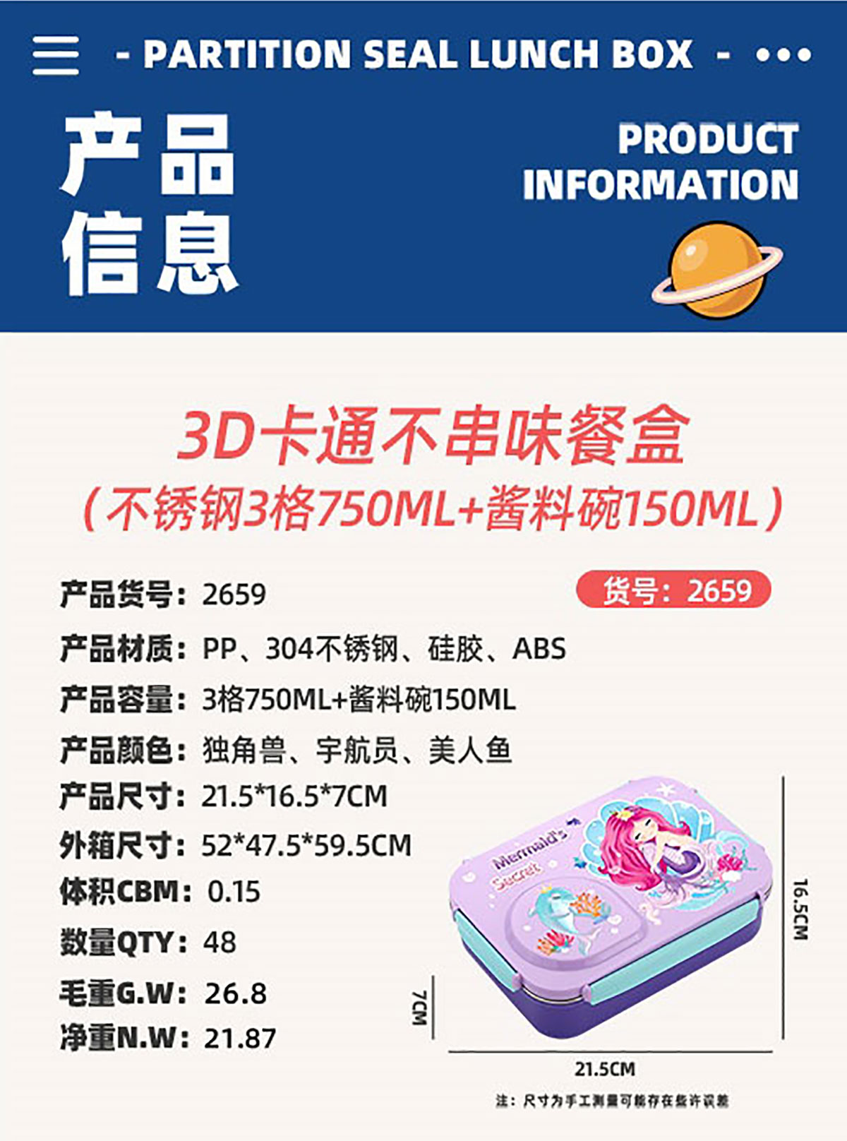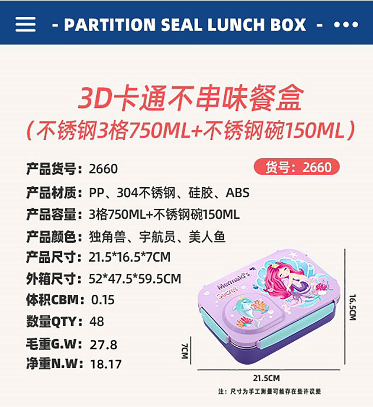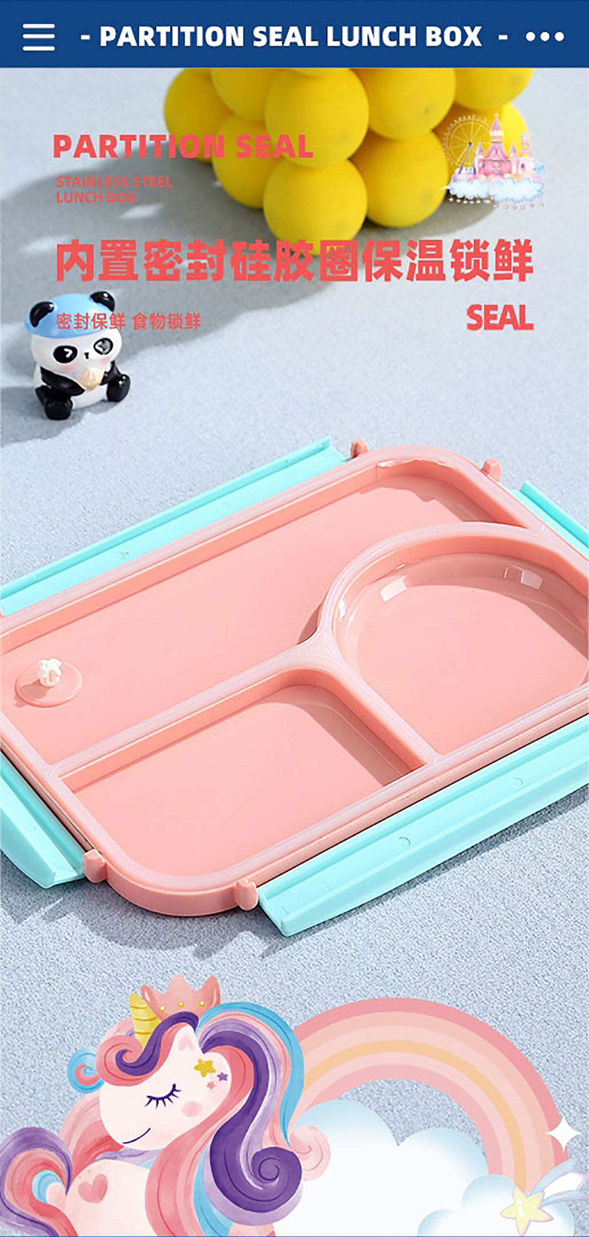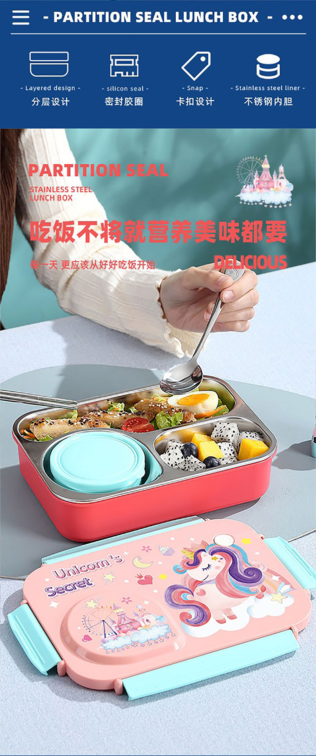 3D卡通不串味餐盒(不銹鋼3格750ml+塑料碗/不銹鋼碗150ml+不銹鋼勺筷)