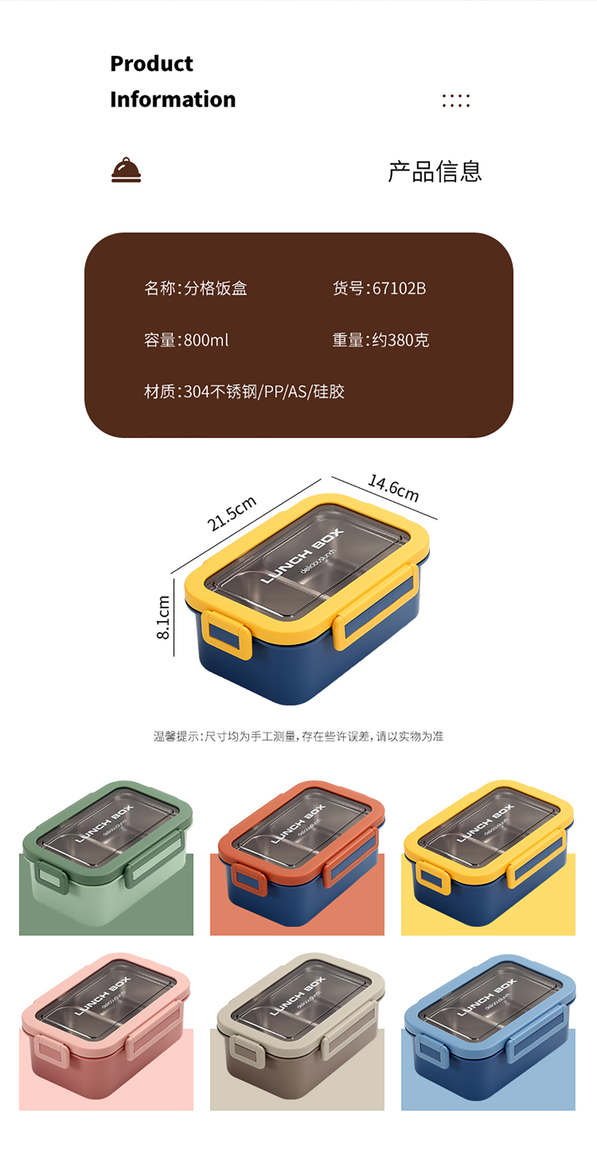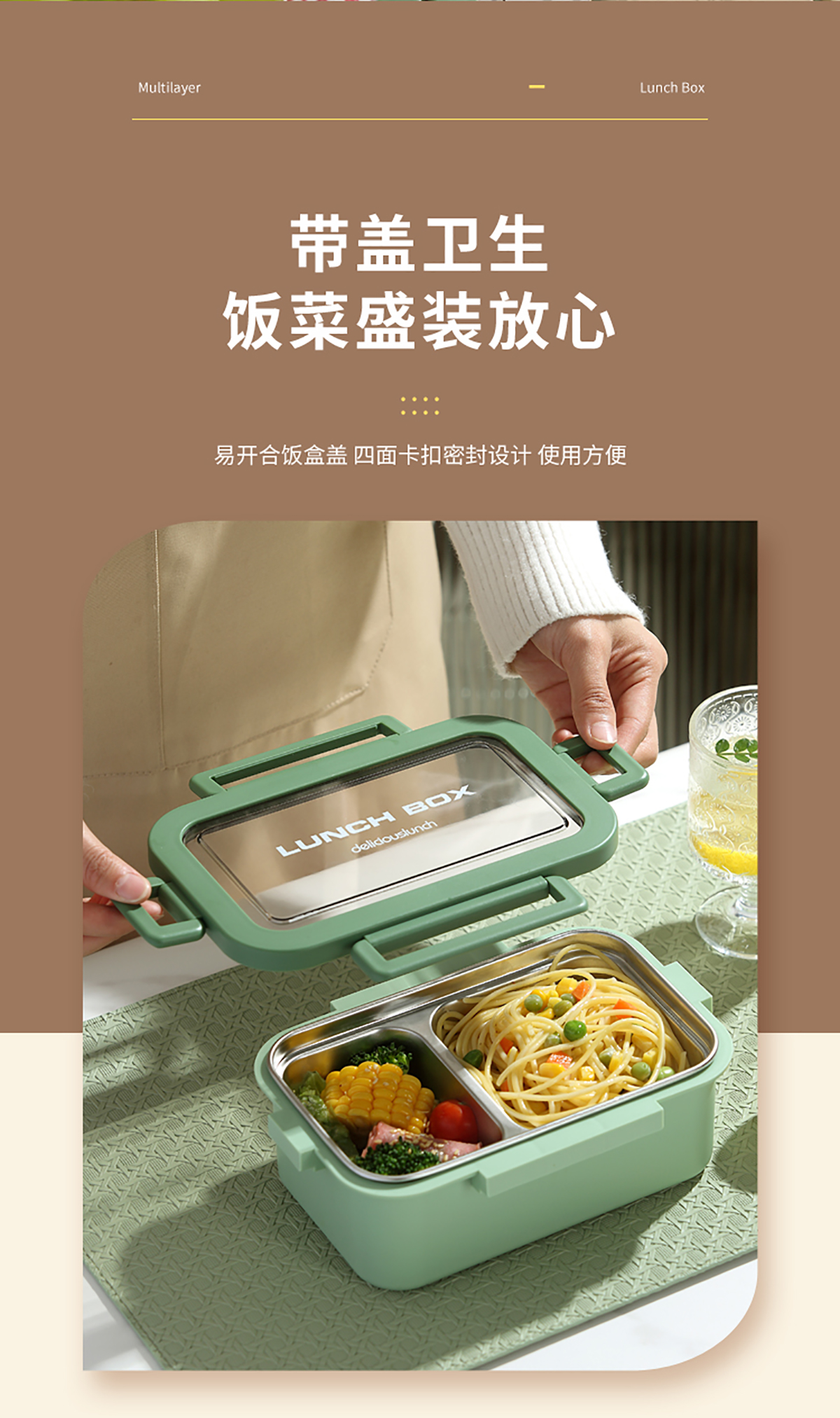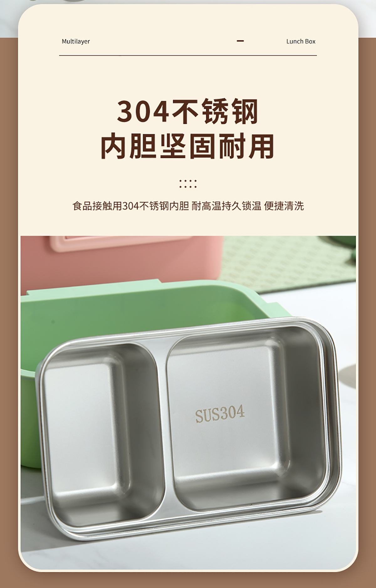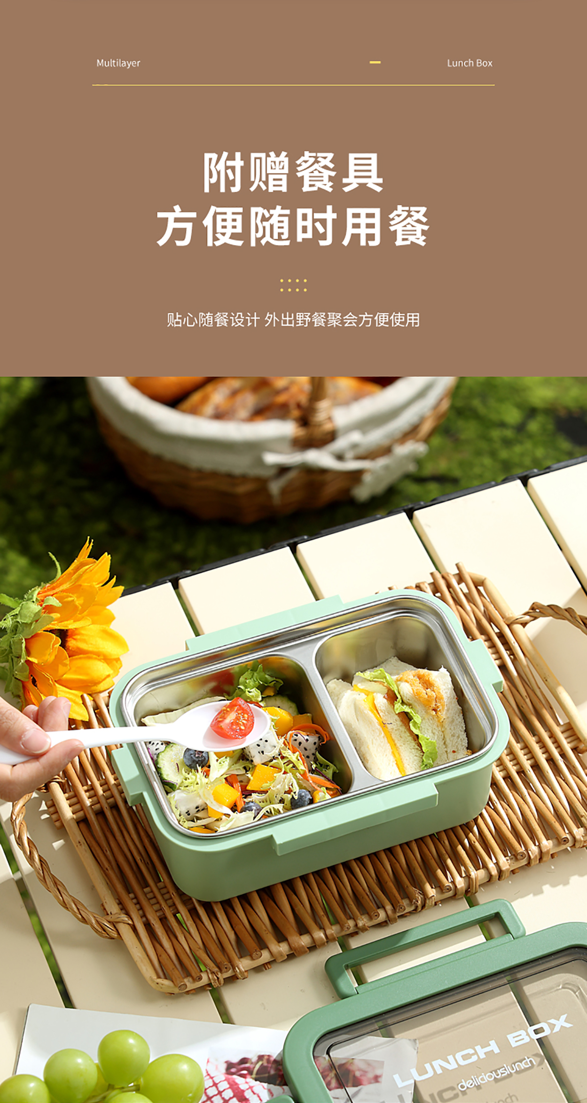 分格不銹鋼飯盒800ml