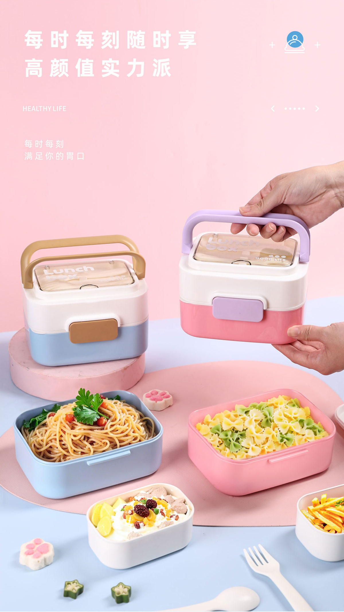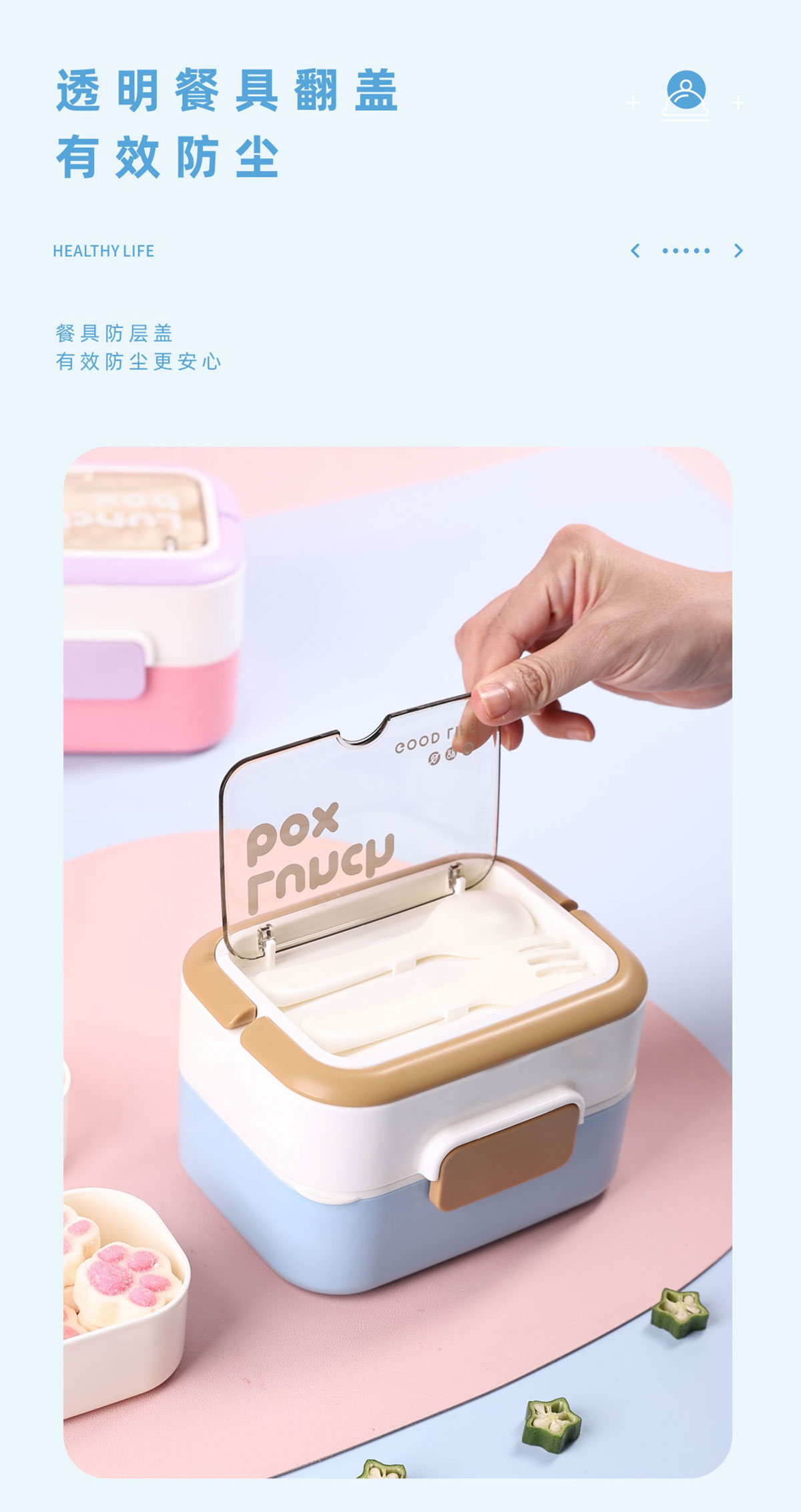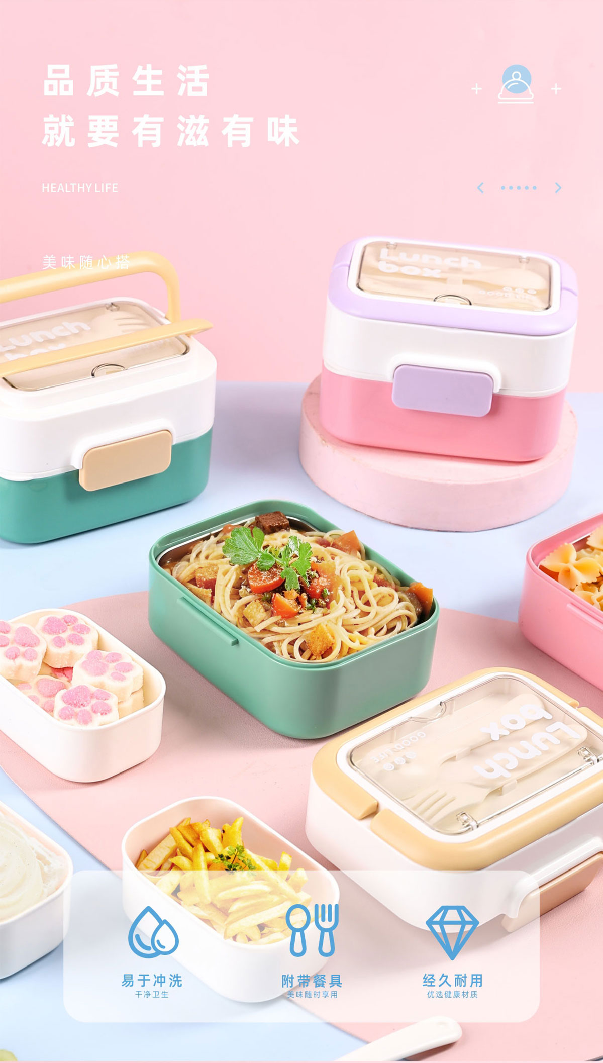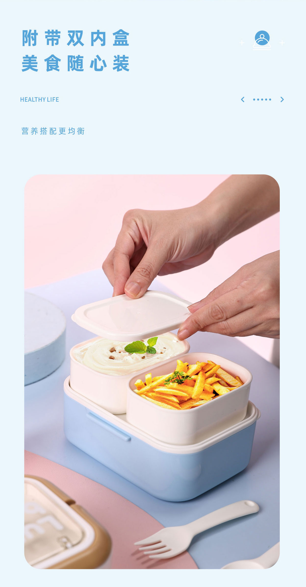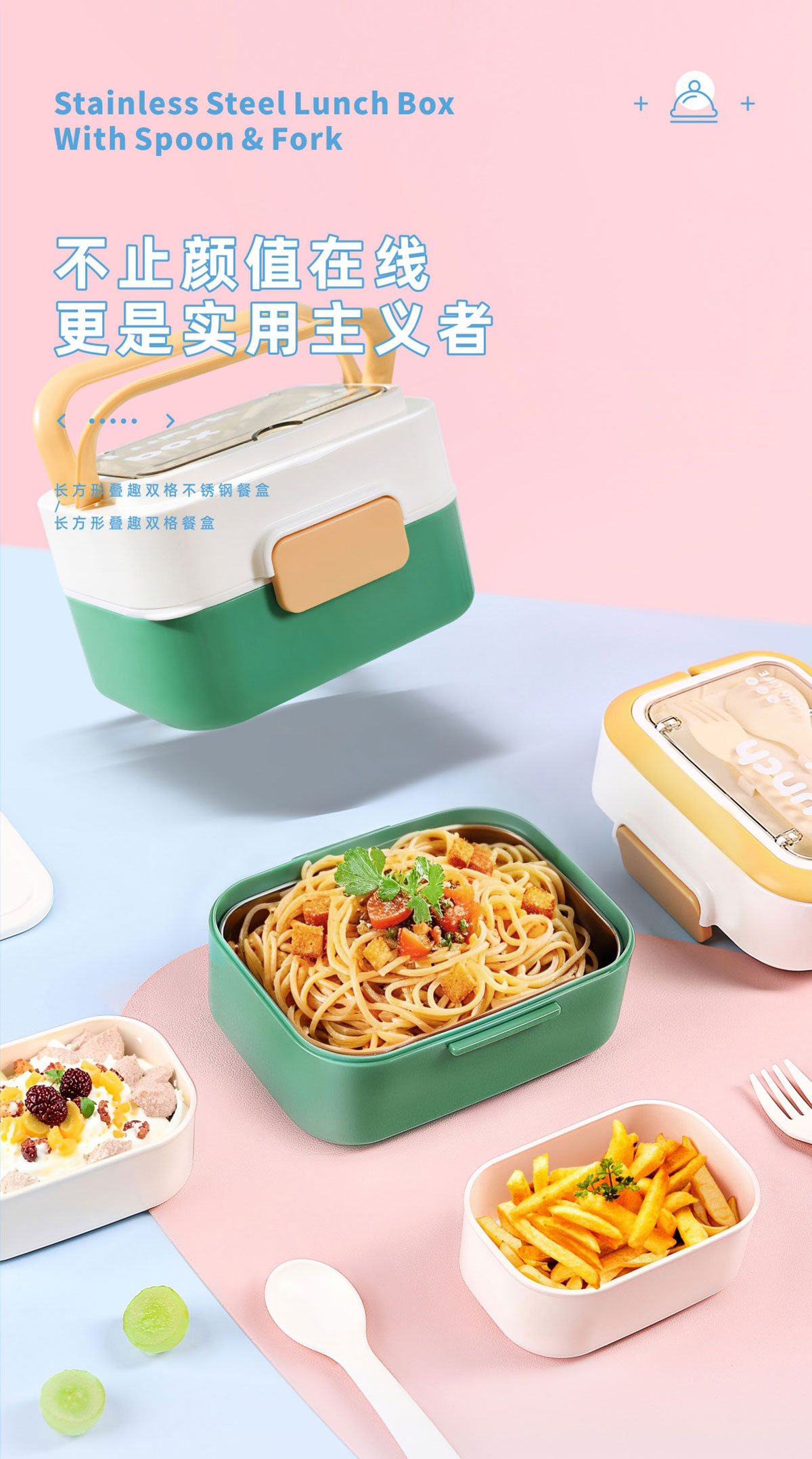 長(zhǎng)方形疊趣雙格不銹鋼款/PP款餐盒