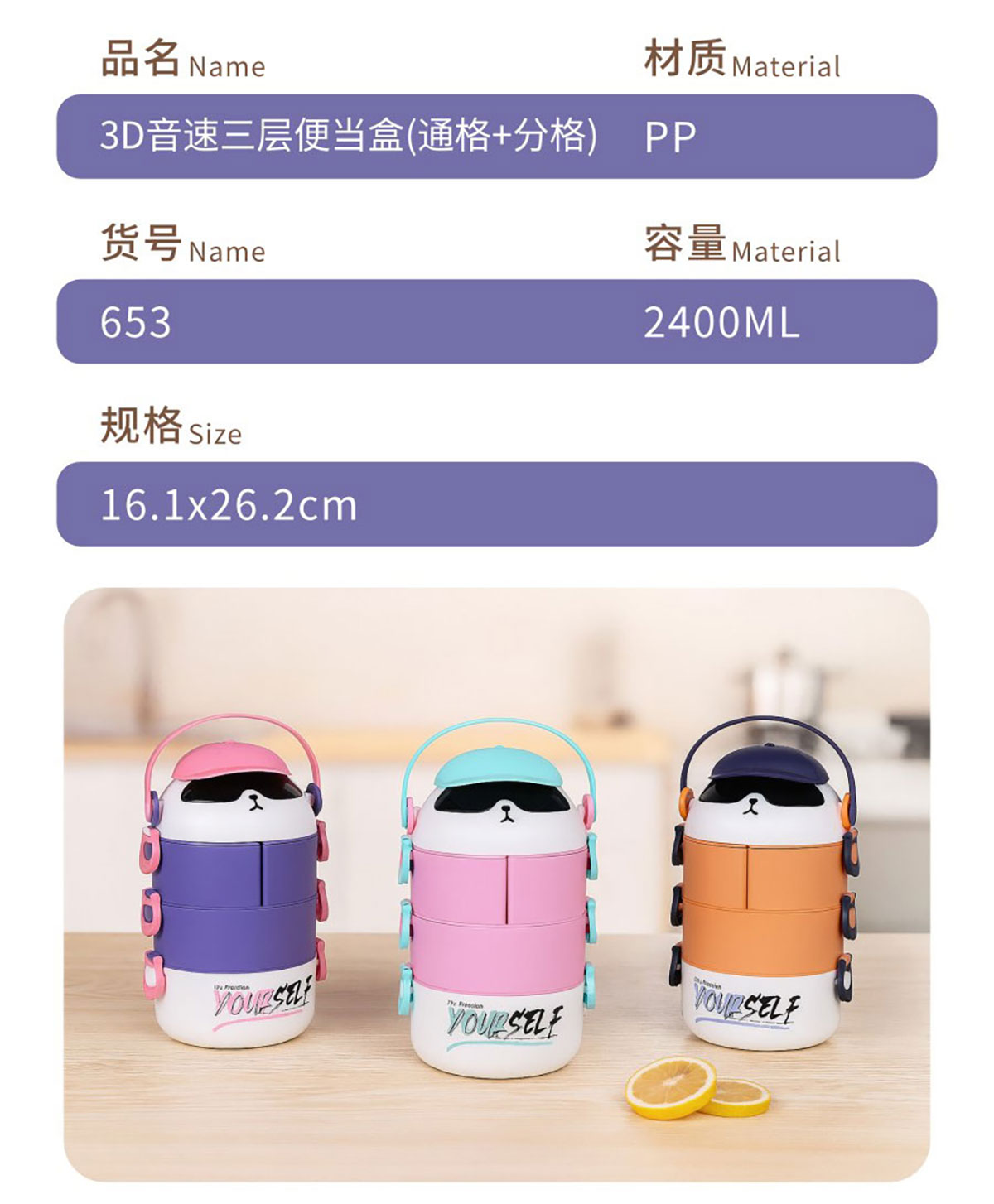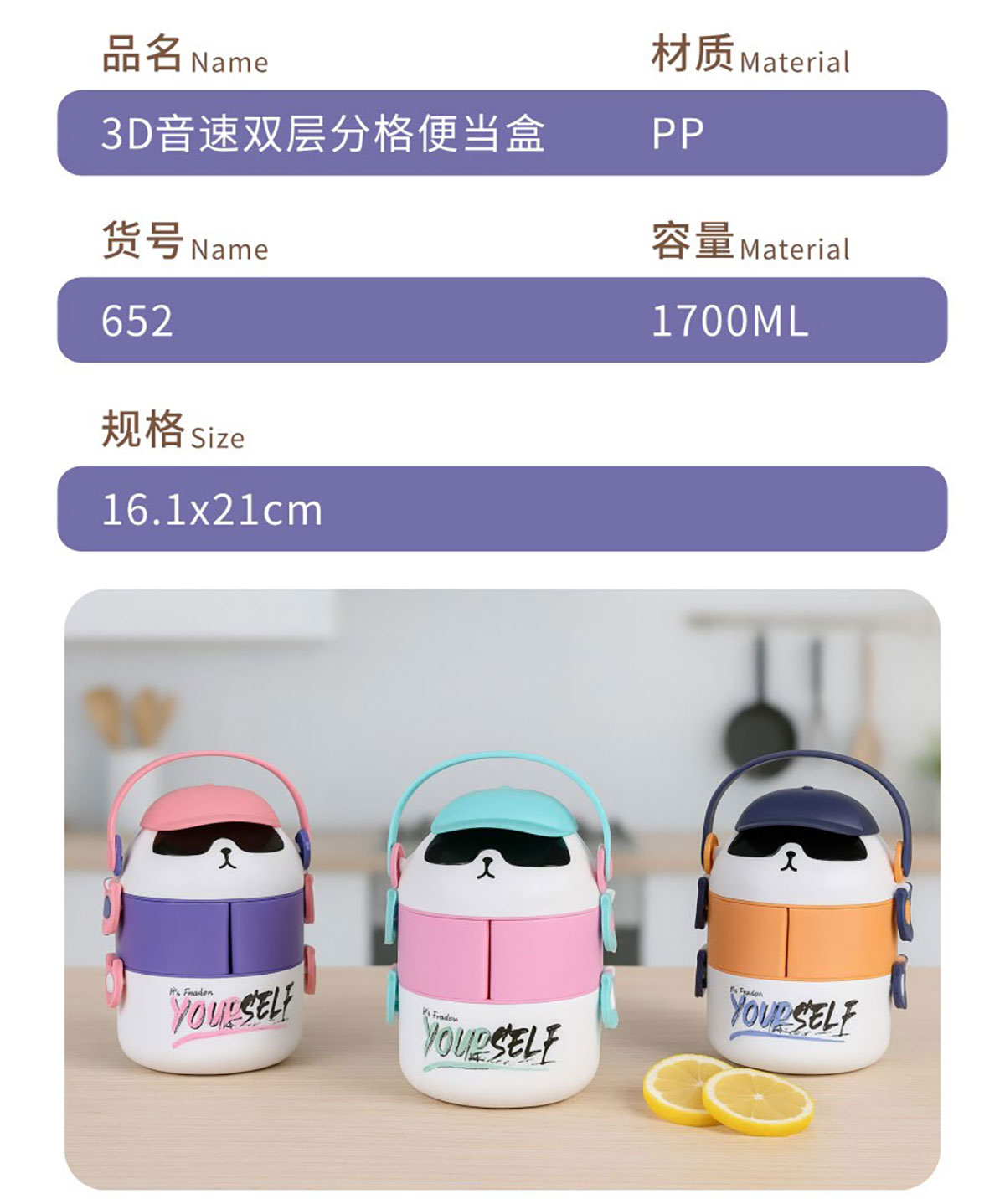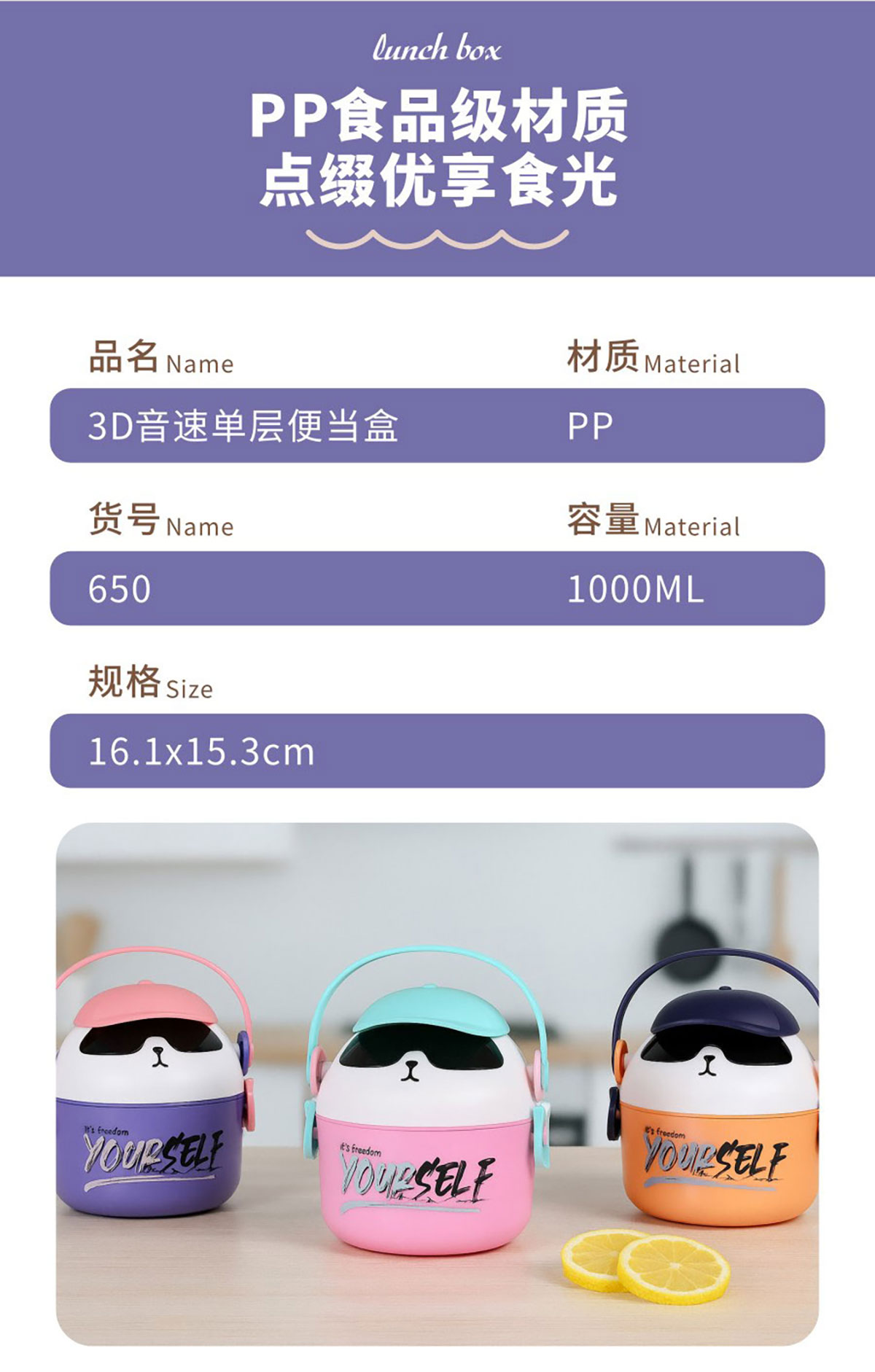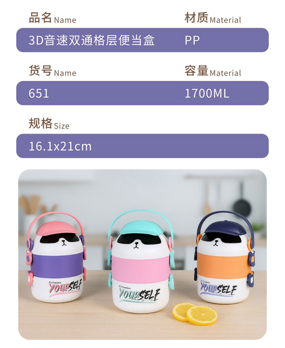 3D音速單層/雙層/雙層分格/三層(通格+分格)便當(dāng)盒1000ml/湯杯400ml