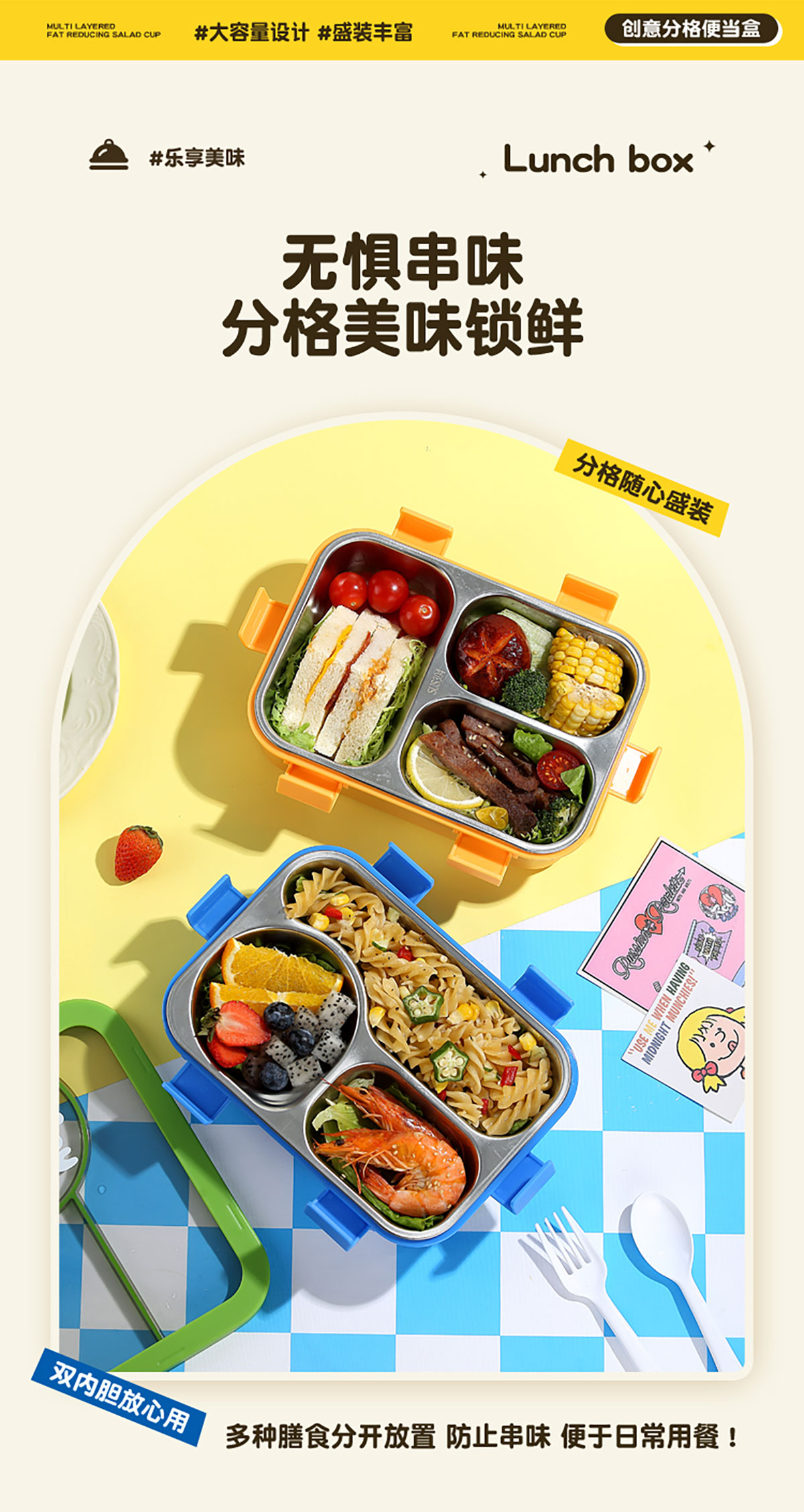Size: 221*161*73mm/三格700ml/三格碗型650ml